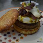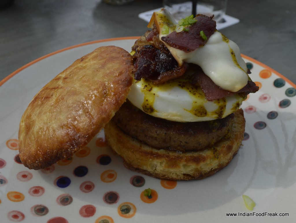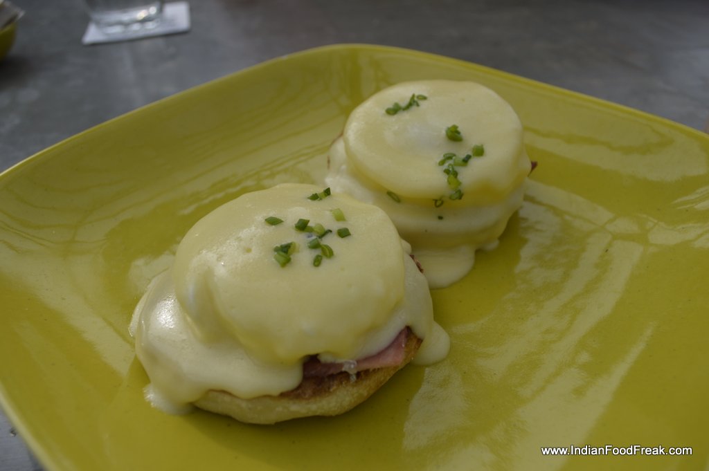 Breakfast SliderMy friend order for bbq pork steamed bun (130) which is as good as any other char siu except that I miss on the oyster sauce flavours in this. Breakfast Slider (225) is made on a bed of a Louisiana style biscuit which is supposed to be crunchy on the top with fluffy and moist interiors. The poached egg, bacon and house made sausage patty are nicely done but the biscuit is too brittle to give all flavours in one go. The egg Benedict (215) has an excellent hollandaise sauce (not too thick) but here too I miss on the flowing yolk which is a sign of this wonderful dish.