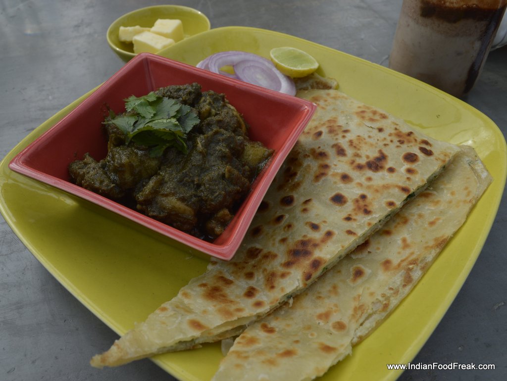 Garden of five sensesMy friend loves the vegetarian option in Garden of five senses (465) that has vegetable crepe, hash browns, feta-cheddar-yellow & red bell pepper stuffed mushrooms, grilled tomato, baked beans and tomato chutney served with toasts. This is a complete meal and any vegetarian who has been looking for options is going to be very-very happy. At the same time I almost finished eggs in a blanket (325) which is an egg parantha that I ordered with pandi curry. It is recommended for anyone who is Punjabi by heart and gourmand by nature and it satisfies both.