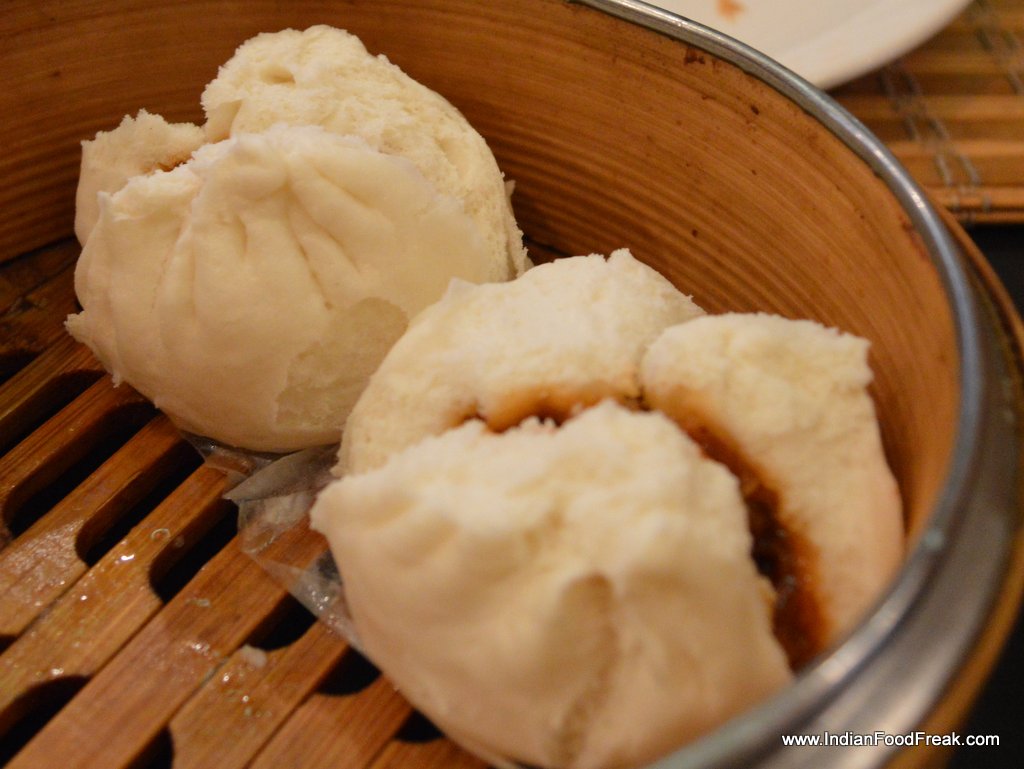 DSC_0136In the main course, the kung pao chicken (Rs 435) is listless. It becomes somewhat edible when I add lots of mustard and vinegar green chilly to it. Clay Pot rice (Rs 375) is nothing but steamed rice. The only saving grace is the roast pork mushrooms bamboo shoot (Rs 380) and the flat rice noodles (somewhat like pad thai; Rs 375). So all of us enjoy these two dishes and these are the only ones that are polished off.