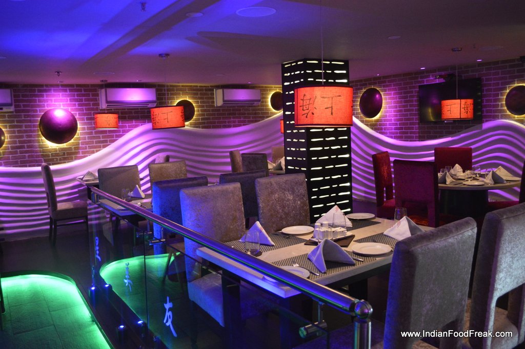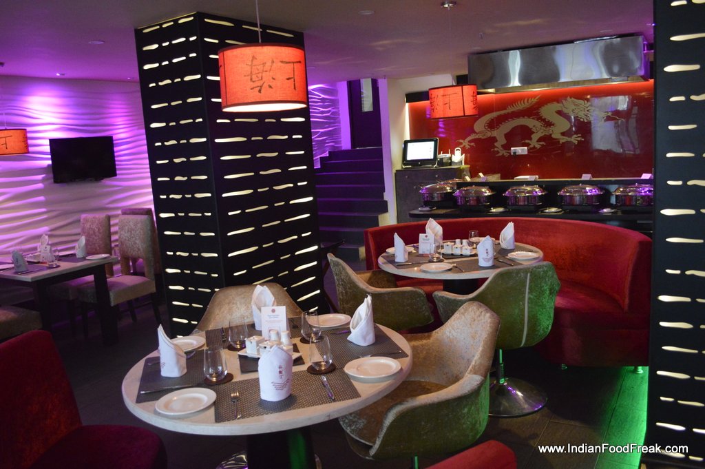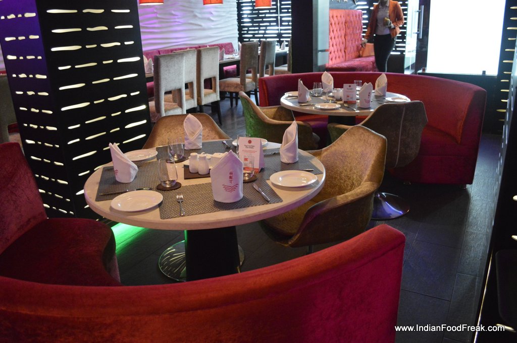 Shanghai 30 is a Pan-Asian cuisine restaurant, specializing mostly in Chinese dishes with some Thai, Japanese and other Asian dishes. Situated at Hauz Khas market, it has a seating capacity of 100 covers. The décor consists of zany colours and neon-ish lighting, allegedly mimicking Shanghai’s night life. My first exposure to the interiors leaves me a bit breathless but I guess the younger generation would like the glitzy décor.