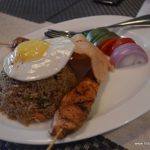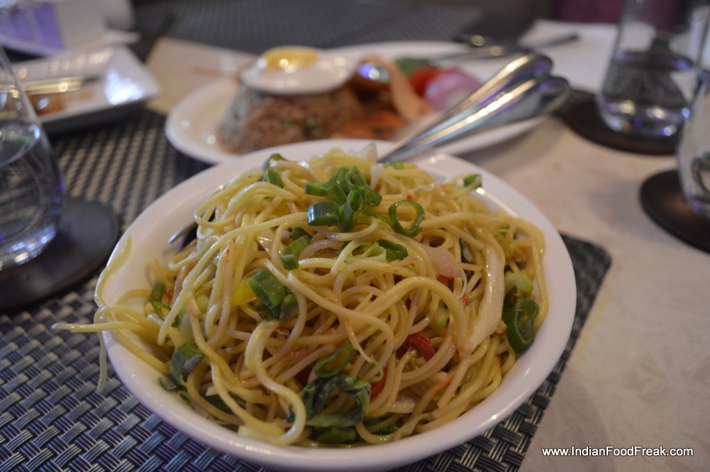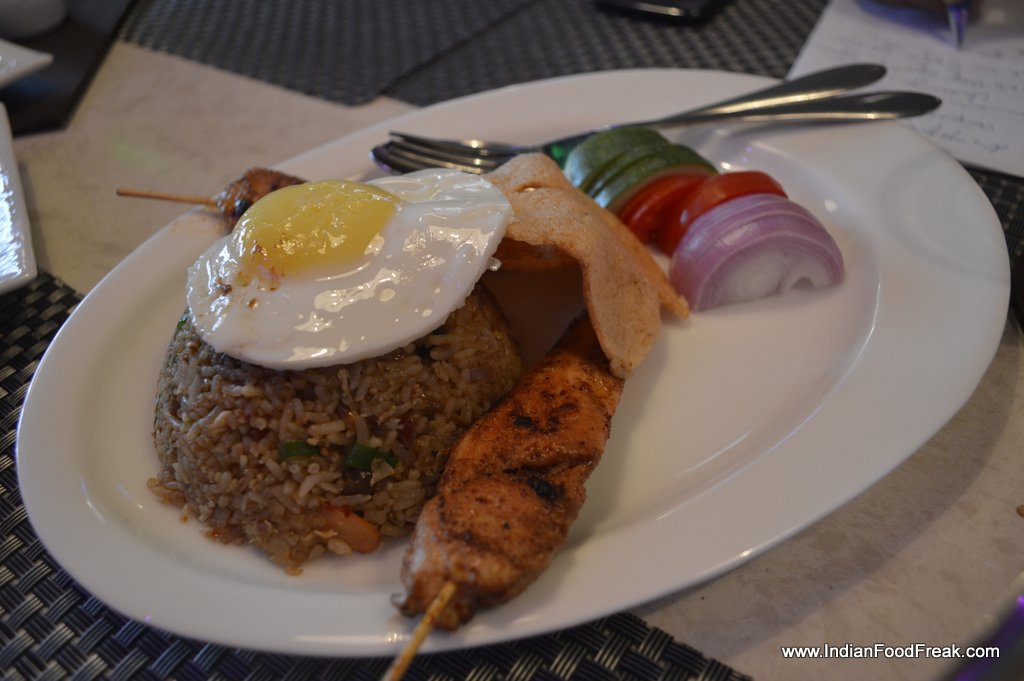 Apart from the soups, the second highlight of the lunch is Nasi goreng (Rs 499). Nasi goreng literally meaning “fried rice” in Indonesian, is a meal including stir fried rice typically spiced with sweet soy sauce, onions, garlic, tamarind and chilli and accompanied with other ingredients, particularly fried egg, prawns, chicken satay and crackers. The spices have been kept mild in all dishes served here. What I long for is a hit of spicy sambal (an Asian chutney) to perk up the heat, but even without it, it’s a dish most enjoyable.
