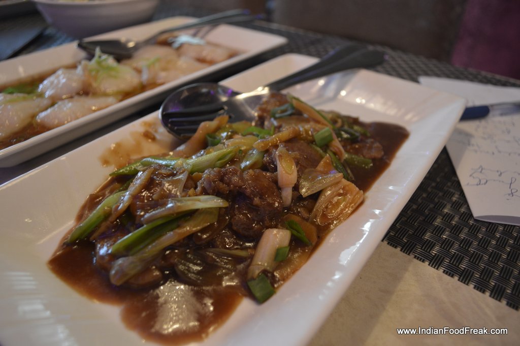 In the main course, jumbo prawns with chilly black bean (Rs 780) has the same problem as wasabi prawns, that is gooey texture due to the improper refrigeration of the prawns. Sliced tenderloin ginger spring onion (Rs 490) suffers from poor quality of the buff used. Steamed fish light soya (Rs 599) is nice and benign, and a mixed vegetable with tofu preserved chilly sauce (Rs 340) is interesting.