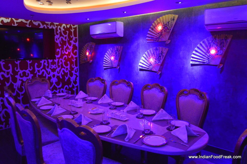 Shanghai 30 is a Pan-Asian cuisine restaurant, specializing mostly in Chinese dishes with some Thai, Japanese and other Asian dishes. Situated at Hauz Khas market, it has a seating capacity of 100 covers. The décor consists of zany colours and neon-ish lighting, allegedly mimicking Shanghai’s night life. My first exposure to the interiors leaves me a bit breathless but I guess the younger generation would like the glitzy décor.