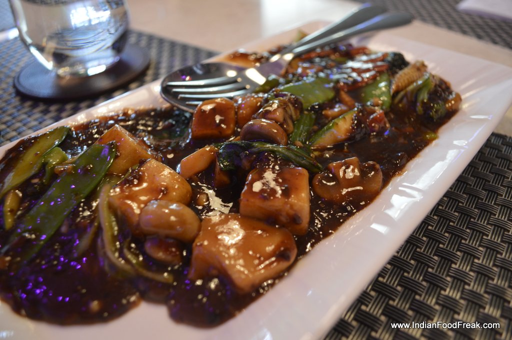In the main course, jumbo prawns with chilly black bean (Rs 780) has the same problem as wasabi prawns, that is gooey texture due to the improper refrigeration of the prawns. Sliced tenderloin ginger spring onion (Rs 490) suffers from poor quality of the buff used. Steamed fish light soya (Rs 599) is nice and benign, and a mixed vegetable with tofu preserved chilly sauce (Rs 340) is interesting.