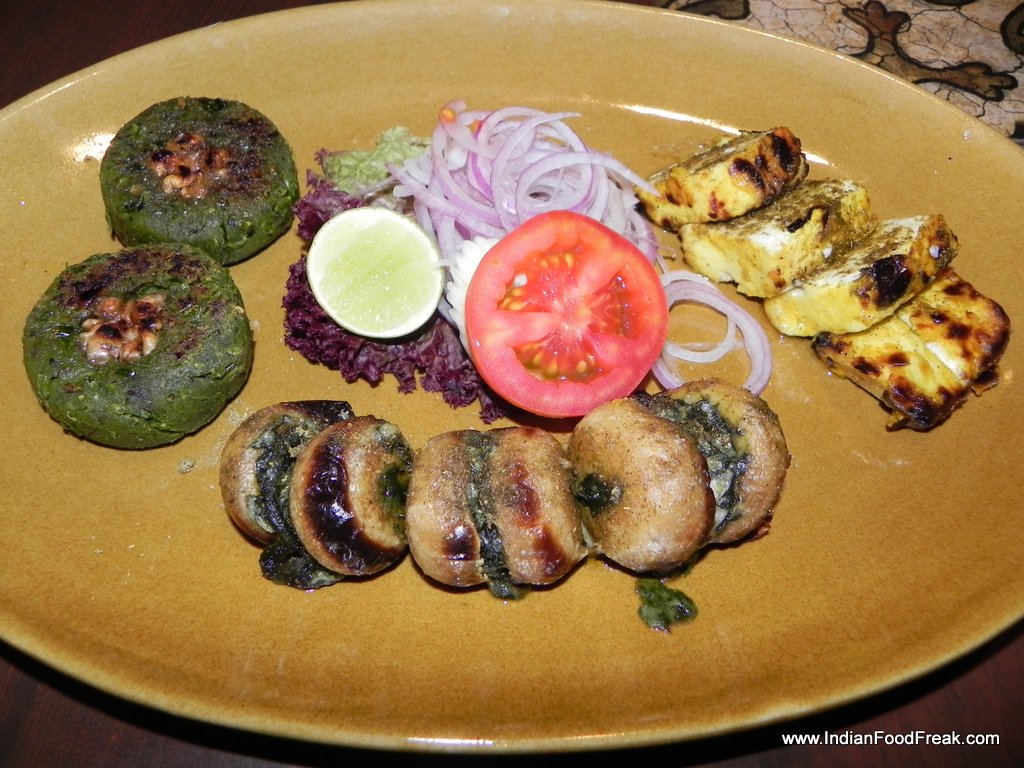 Barrah Kebeb Lazeez1We started with the non-veg appetisers – Chakori Murg, Chandni Kebab and the trademark Barra Kebab. I was a little disappointed that they had not started serving the signature Galawati kebab and Shikampur Kebabs, but then that was short-lived; only until I had my first morsel of the chandni kebab ! The Chandni Kebab were morsels of chicken laced with cream, now-here-now-gone, leaving a lingering taste with you, pining for more; amazement. The Chakori murg, a green masala roasted chicken was softly succulent. The barra kebab were tender, melt-in-your-mouth, tangy pepper, char grilled excellence! The vegetarians have enough to rejoice too. We tried the Peshawari Paneer tikka, Khumb khazana and Mutter aur Cheese ka tikka. I am a non-veg addict and yet I couldn’t resist taking second helpings of their vegetarian offerings. The paneer was well marinated bursting with flavour.Chandi Kebab1 The khumb khazana, mildly seasoned, brought out all the subtlety in tastes of the spinach and the mushroom.The mutter-cheese tikka were however my favourites; saffron, cheese, green peas and perfection – what was there not to like! One must mention the amazing chutneys that accompany these: mint, yogurt/mint, garlic chilli, chilli and the special touch of the chef – chickoo bell-pepper chutney. The last one is a must try.