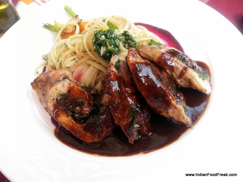Pork Ribs are melt-in-the-mouth and I love them except that overuse of barbeque sauce makes them a tad bit overly sweet. Equally good is the Roast Stuffed Chicken (Rs440) which is neither dry nor devoid of flavors like in most other places.