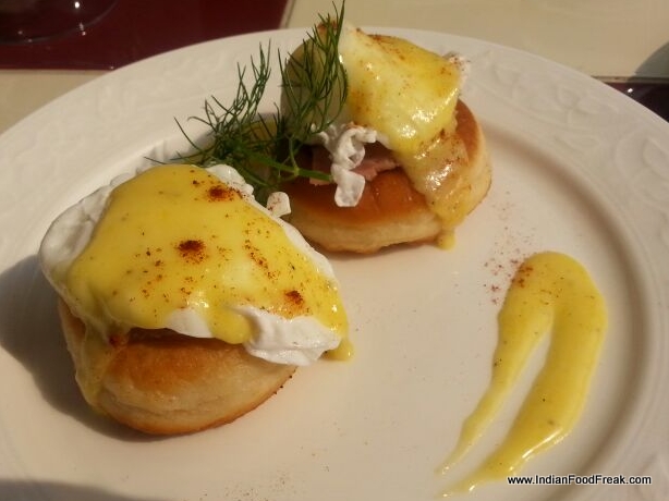 I can have eggs Benedict (Rs160) anytime and I have for the mid day meal. The yolk flows well, hollandaise is perfectly balanced and the muffin is nice. I like the bacon that is served along, however either the menu or the order taker should warn people who may not know that the preparation contains it.