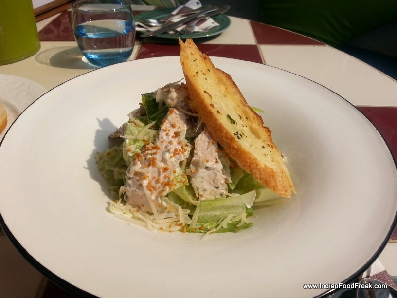 Apple & Kiwi Delight and Milano Smooch(Rs145 each), are well-made mocktails (alcohol license is still awaited) and Chicken Caeser salad (Rs 260) is fresh with perfectly grilled chicken and crisp lettuce. It is served with garlic bread while I like it better with traditionally used croutons.
