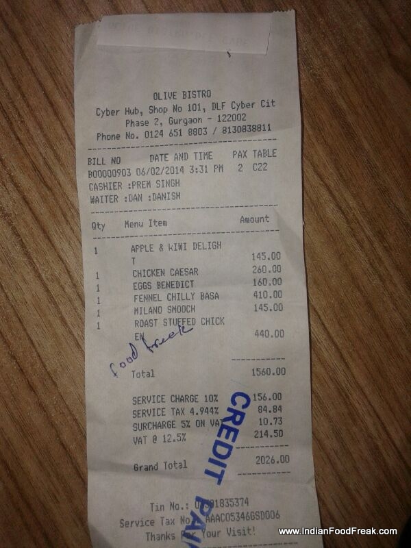 The theme is just like any other olive property and gives an open feel but the menu has been slightly changed to appeal to the corporate youth and their desire for a quick meal between meetings and short lunch hours.