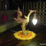 We started the evening in the delightful company of GM Biswajit Chakraborty, who has just taken charge and his gracious wife Moushumi. The Thai students from the Pune University had put up some amazing dance performances. If someone had not informed us we would not have known that these were not professional dancers. The grace and allure set the tone of the evening. We started with drinks at the bar. We had a choice of cocktails. One was rum and chocolate liqueur based cocktail with water chestnut pieces on the swizzle sticks. I loved the creamy rummy taste and the unusual pairing with water chestnuts. The other was a Tom Yum Soup inspired Margarita. True to the name, it was spicy and tangy. Like all things Thai, it had a note of sweet and tangy followed by a spicy burn. The accompaniments with the cocktails were Satay chicken; bland and usual, Fish cakes; spicy and lemon grassy, Corn fritters; simple goodness.