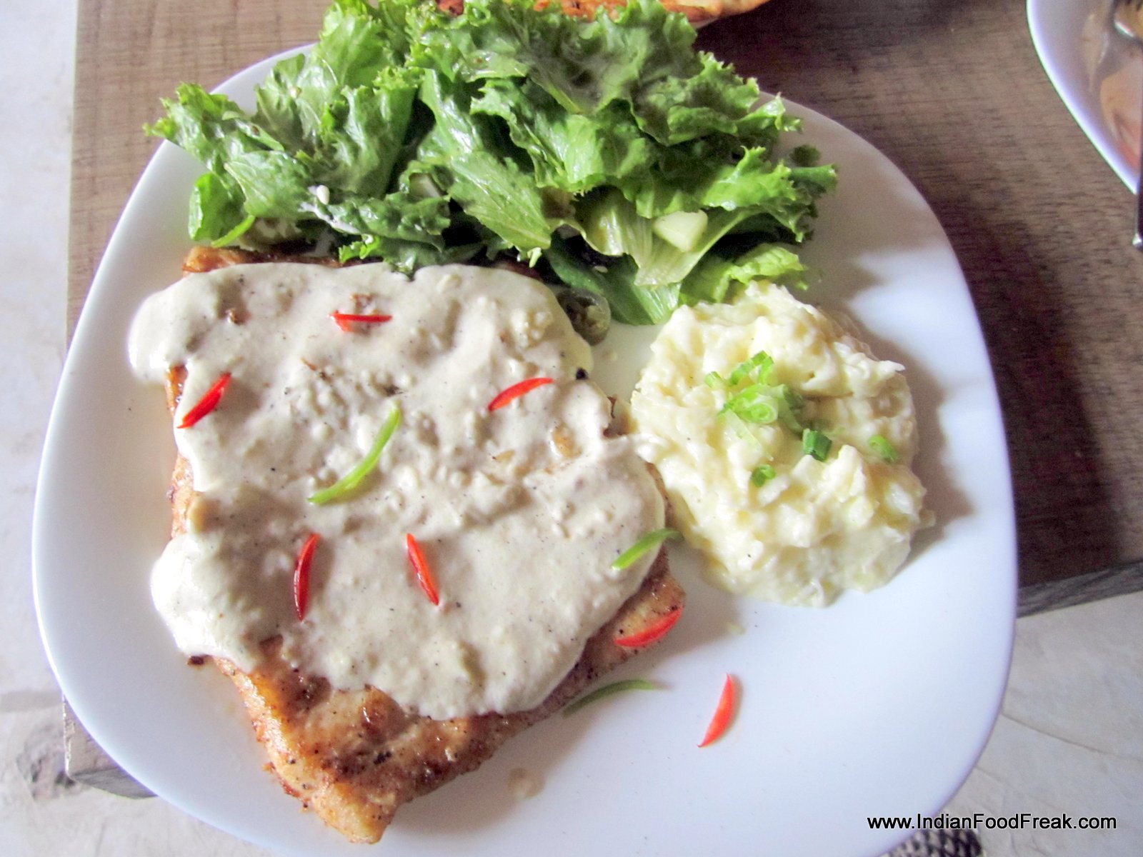 How can we leave out seafood from our tasting? So we decide to taste the grilled sole fish with lemon butter sauce (Rs 505). What stands out is the salad which is fresh and dressed well. The fish itself is somewhat dry and overcooked. The lemon butter sauce is a bit too heavy on the palate and masks the taste of the dish.