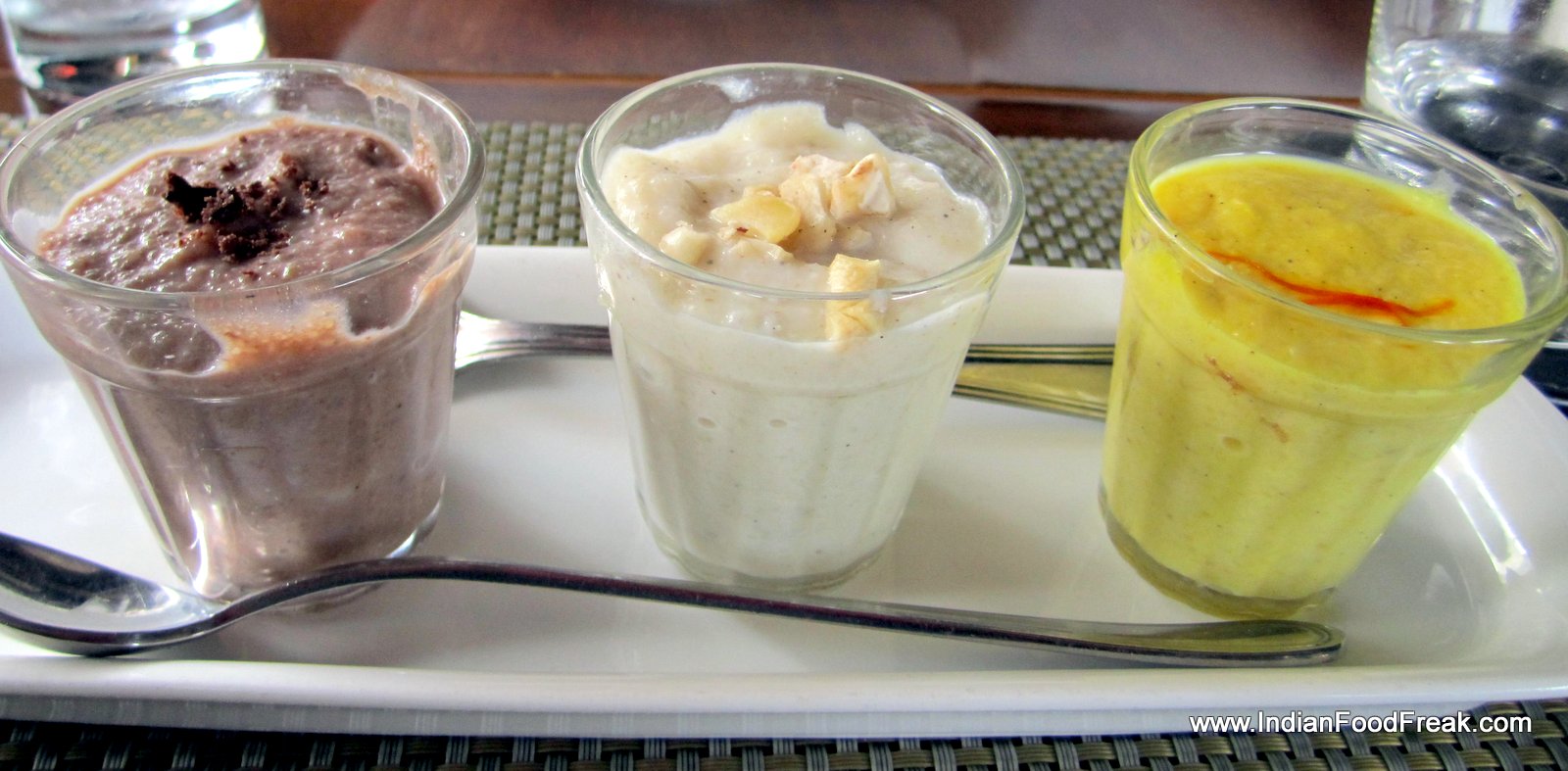 Bhindi raita (Rs. 125) has crispy fried bhindi sprinkled on curd, and though it sounds interesting on the menu, it cannot imbibe the bhindi into the raita. The olive & basil kulcha (Rs. 90) makes quite a blockbuster entry to the world of kulchas, generously stuffed with olives & basil. The kulcha is not thick which means it doesn’t fill you up with an overdose of refined flour. Phirni (Rs. 125) is interestingly served in three flavours – cardamom, kesar & chocolate the phirni is close to being a miss unless you essentially need a dessert to end a meal with. The phirni does not successfully marry the rice with the milk and lacks the taste of a delightful serve it otherwise is.