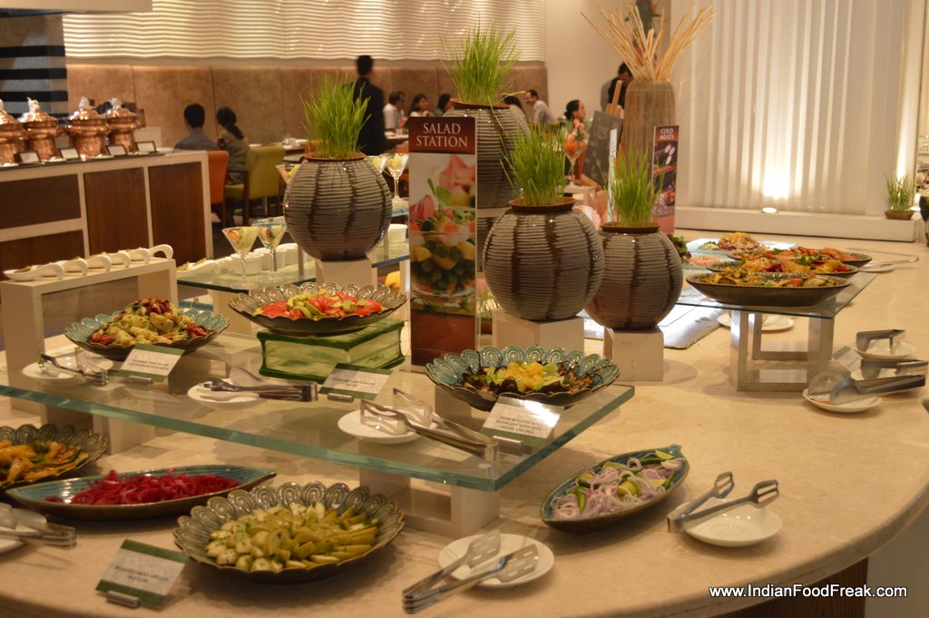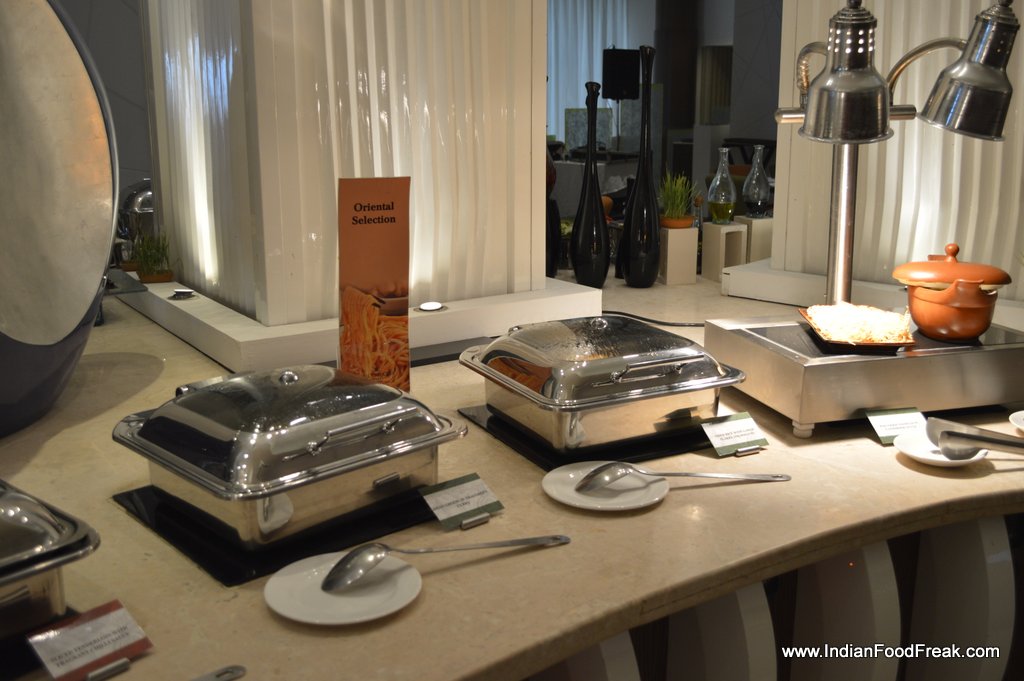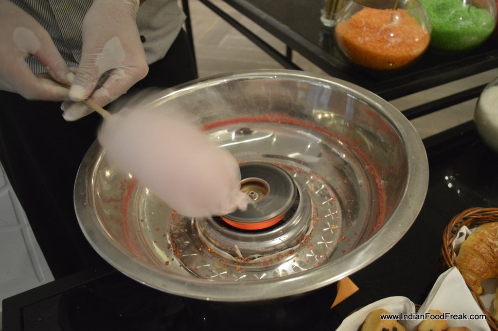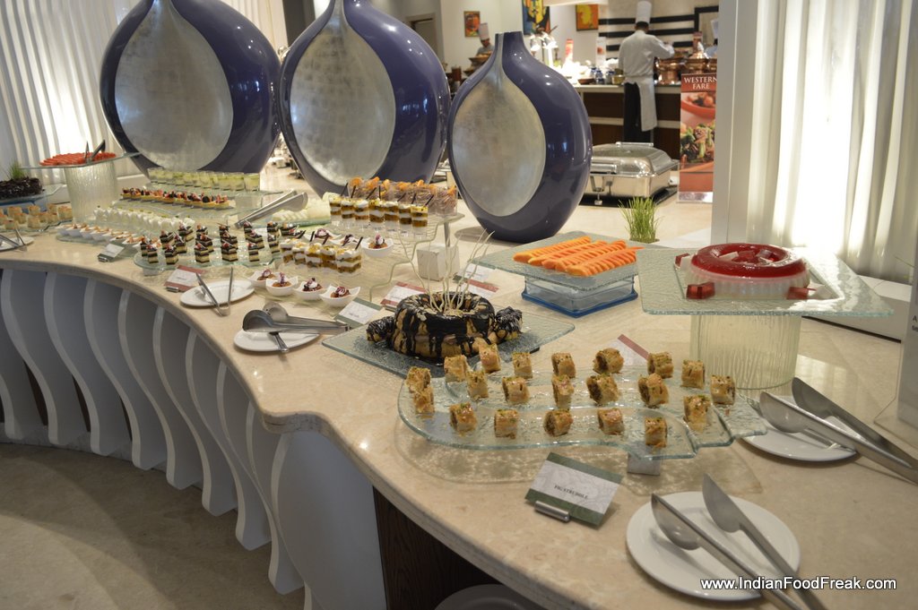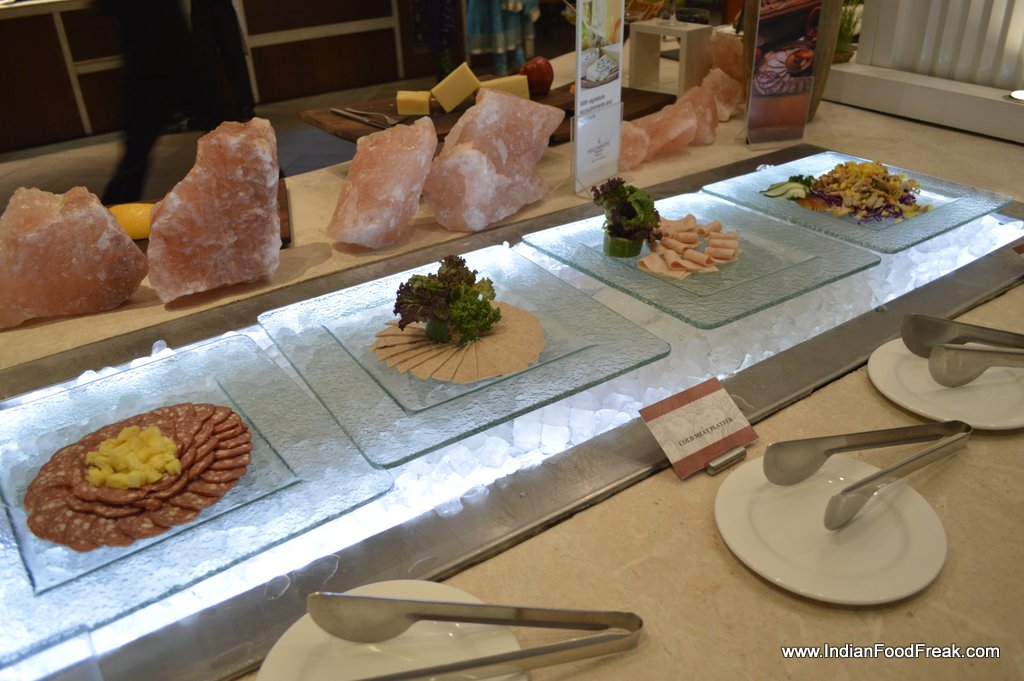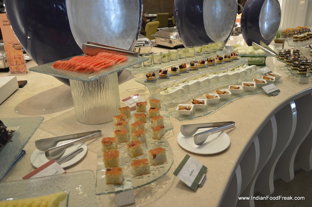 The juice counter, candy floss for kids, chaat counter, salad and cheese counters apart from Oriental and Indian selection all are limited but made well. And one does not need more than this and the live egg and pizza stations for a heavy brunch.