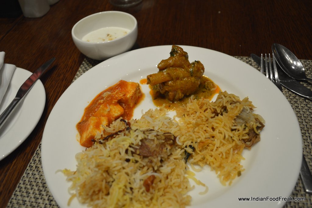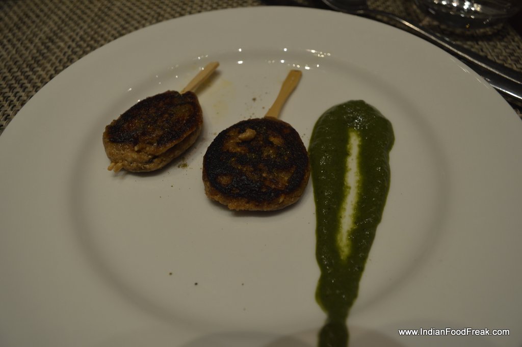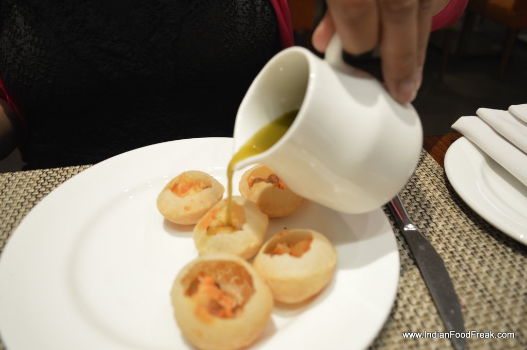 I start with murgh chapli kebab and paneer khajur ki chop. Given an option I could finish my entire meal on the refreshing and light paneer-khajur ki chop that is light and accompanied with thick mint chutney, much to my liking. Do try the sunheri veg kebab too if it is repeated. Golgappas are as usual and it is difficult to replicate street flavours not only here but in most star properties.