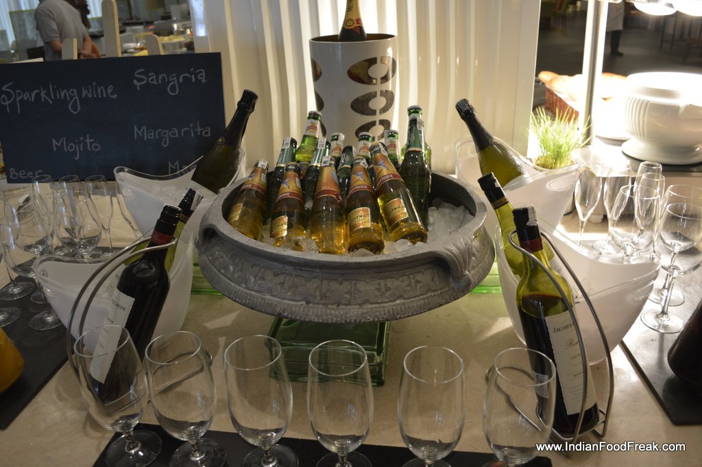 The new property of ITC has a modern feel with high ceilings, glass covered pillars and offers live peppy music to forget the Monday Blues (may be partially for some). The flash mob gigs on Hindi songs by the staff, simple quiz with prizes to be won, kept me entertained while I sipped on fresh watermelon juice before switching on to the Prosecco.