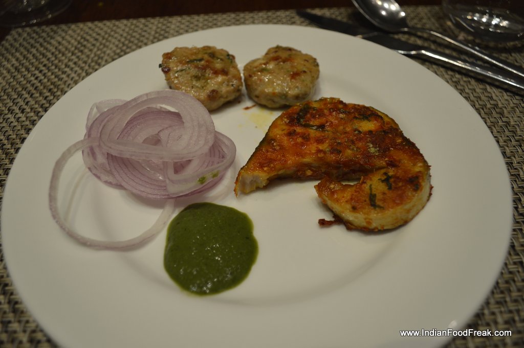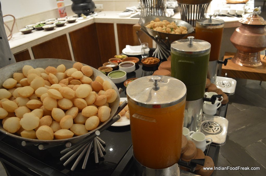 I start with murgh chapli kebab and paneer khajur ki chop. Given an option I could finish my entire meal on the refreshing and light paneer-khajur ki chop that is light and accompanied with thick mint chutney, much to my liking. Do try the sunheri veg kebab too if it is repeated. Golgappas are as usual and it is difficult to replicate street flavours not only here but in most star properties.