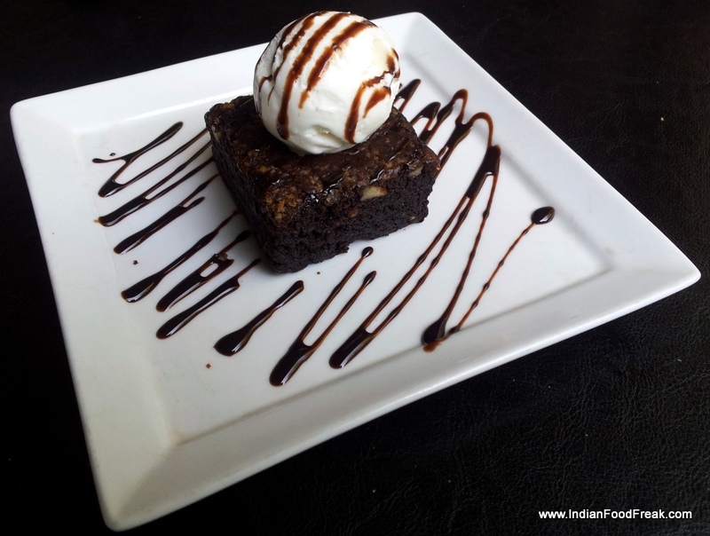 For dessert we chose Chocolate Brownie served with ice cream topped with chocolate sauce, and the Chocolate Mud Cake served with Cranberry compote (Rs 150/- each). Both the desserts were good. The brownie was warm and gooey. The chocolate mud cake was nice. The cranberry compote served with the mud cake complimented it beautifully.