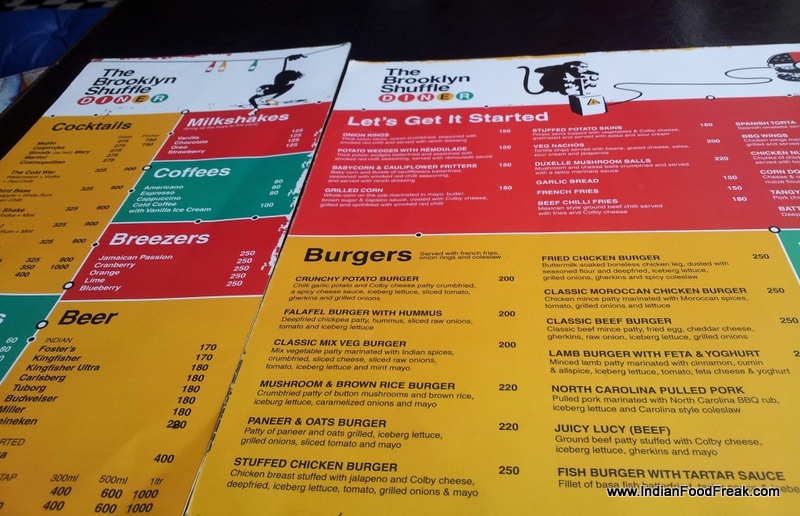 As we entered ‘The Brooklyn Shuffle Diner’ we felt we had stepped into a diner in the US of A. Bright red sofas, blue chairs, lamps hanging low over the tables, wall graffiti and retro music. It definitely felt like an American diner.