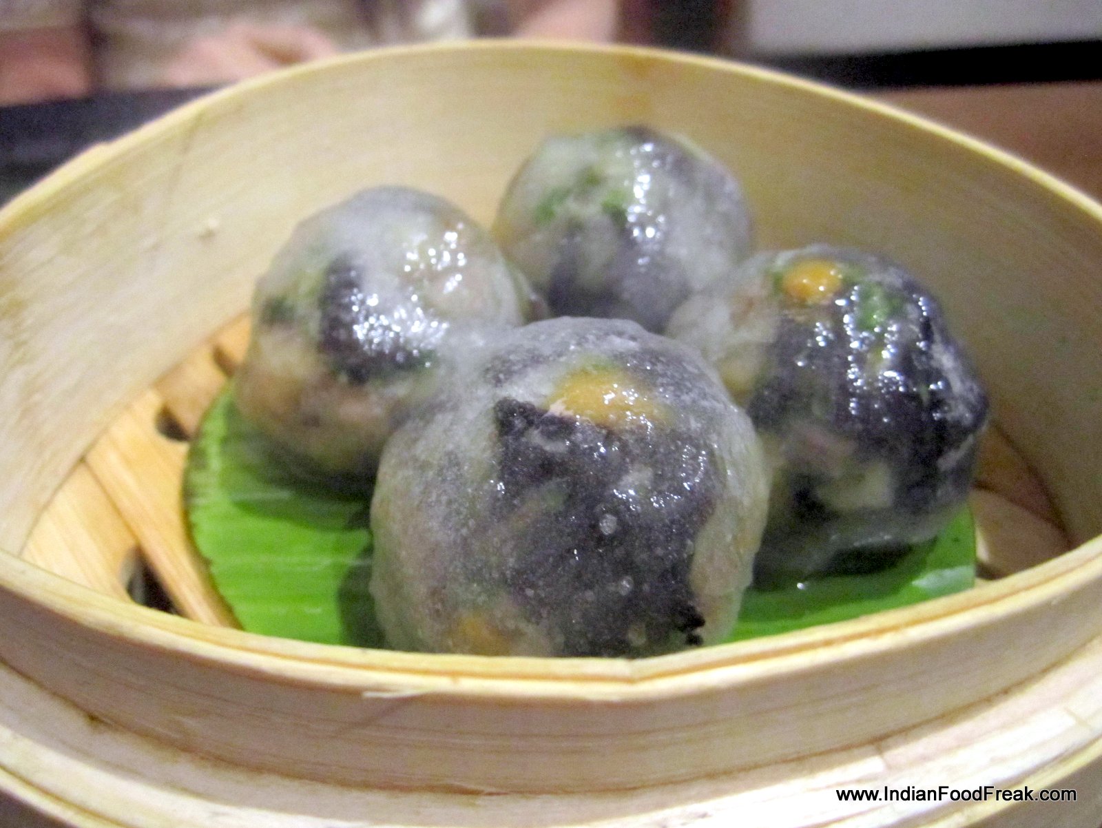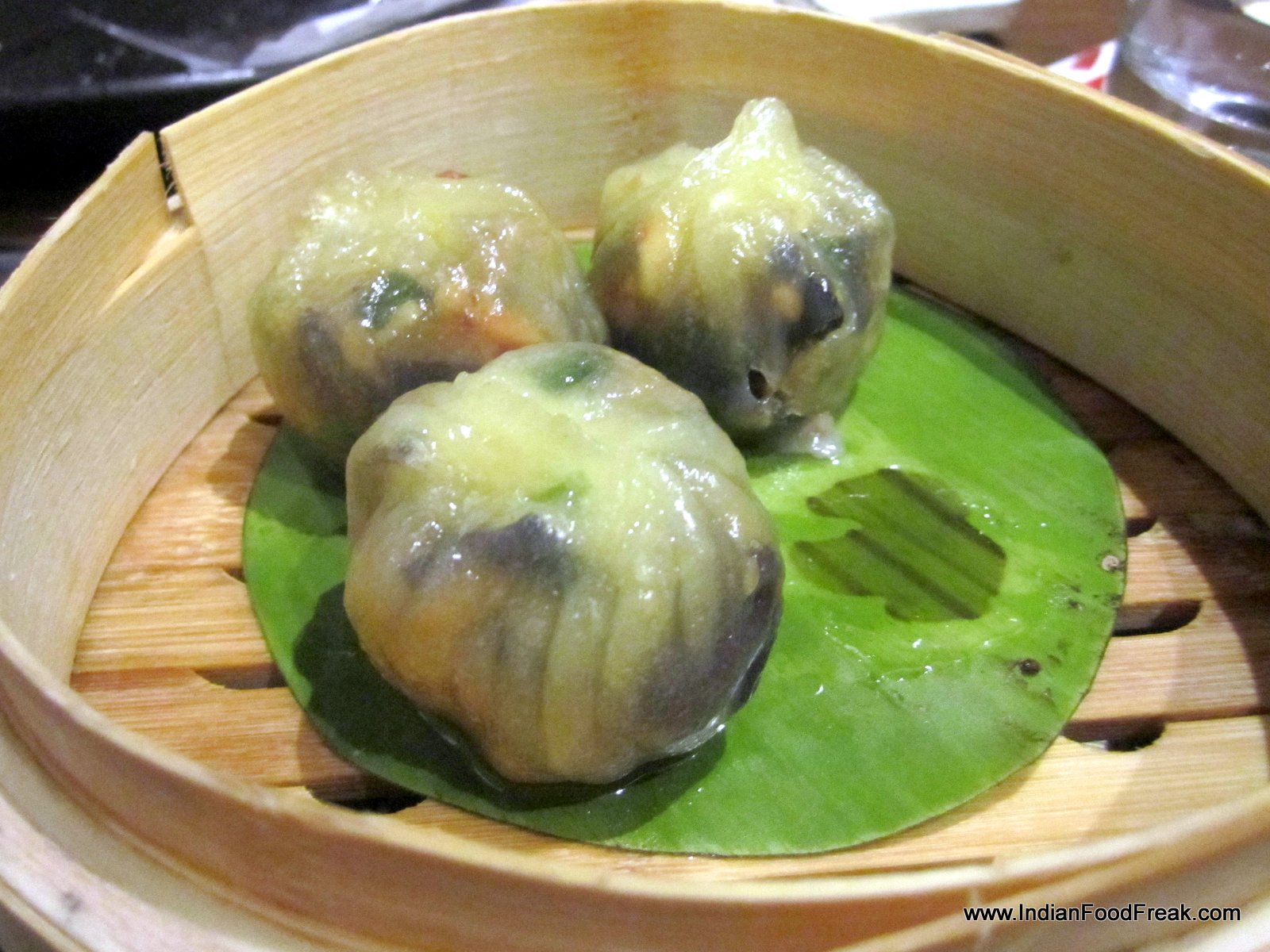 The proof of the yumcha being in the taste, I now settle down to taste the goodies. Starting with the vegetarian dimsums, chilly garlic dumplings (Rs. 245) has mixed vegetables, garlic greens, peanuts and birds eye chili, making it an enjoyable treat. Glass dumpling with five treasures (Rs 225) with vegetables and fresh coriander in a crystal clear pastry is a bit disappointing however with little flavour or textural character. From the non-vegetarian menu, I try the interesting looking spinach and prawn roll (Rs 275) with prawn mousse rolled in spinach, steamed with black bean sauce. It is an excellent creation. Char sui chicken bao (Rs. 295) which has five spice flavoured chicken bar-be-cue bun is beautifully baked but I would have preferred the filling to be a tad bit less sweet.