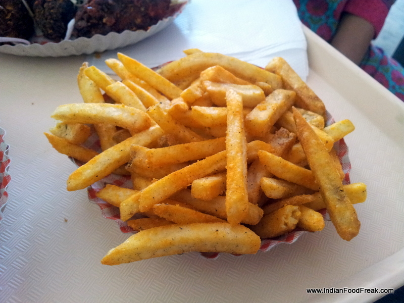 The first thing that caught my eye on the menu was onion rings. From my previous review you have probably gauged that it’s a weakness. We ordered Onion rings (Rs 50/-), Cheese fries and Garlic fries (Rs 35/- each). We also ordered for Red Hot Wings (Rs 70/-).