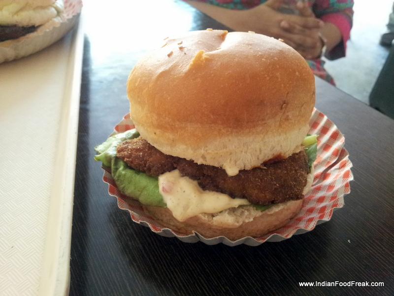 As we chomped through our starters, we recalled the menu card and chose our burgers. Our choices were Spicy Fish Burger (Rs 80/-), Chicken Roast Burger (Rs 110/-), Flipp’d Special Veggie Burger (Rs 90/-), and Meat Steak Burger (Rs 100/-).