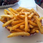 The fries were nice but I prefer my fries thicker and crisper. Flavorings on both the fries were quite good. I was extremely disappointed, though, by the ice tea. It was regular Lemon flavored Nestea but for some weird reason they have a machine that serves it with froth. The glasses were small and 25 percent of the tea was froth. No, I wasn’t happy with that! Given a choice, I would pay more for the tea but would prefer a glass full of it: especially when I walk into a restaurant braving the summer sun.