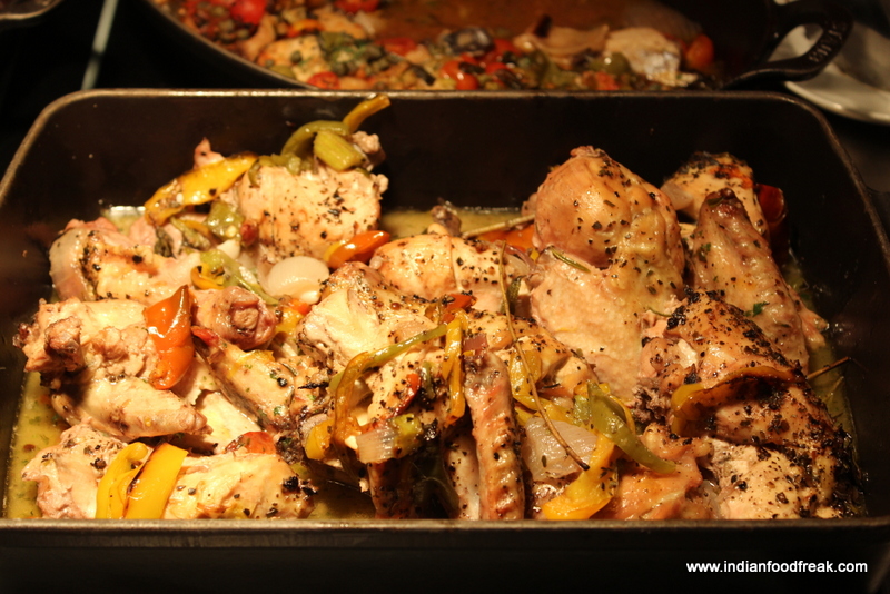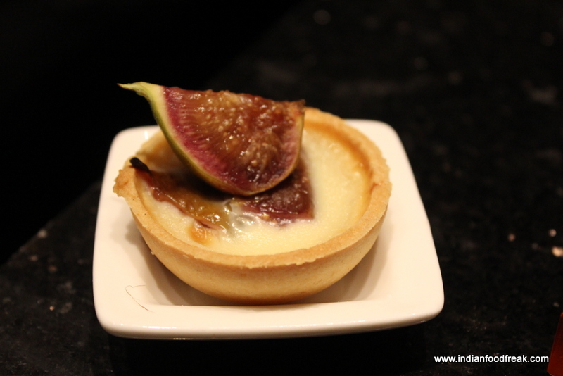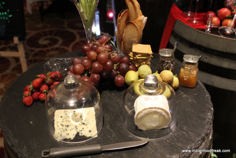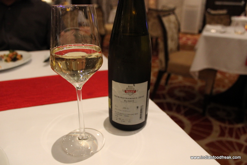 There were cheese and olives and a kind of a grape juice shooter to cleanse our palate before we moved to our next course of Bouillabaisse which is essentially a seafood stew which comes from the Provençal town of Marseille. The chef had used seafood quite liberally in the broth as well as potatoes to give it some body. Served with a Rouille and croutons on the side, the bouillabaisse was a decadent broth full of seafood richness and a bit of heat to suite the Indian palate. We were also served the Thyme and Garlic Flavoured Baked Fish and were poured a serving of Beau Mayne 2011 Sauvignon Blanc and Mure Gewürztraminer. The buttery creamy baked dish with full garlic pods and an intense flavour of thyme was a perfect complement to the Fruity, peachy Sauvignon blanc while the Bouillabaisse went extremely well with the minerally, earthy and spritzy Gewürztraminer.