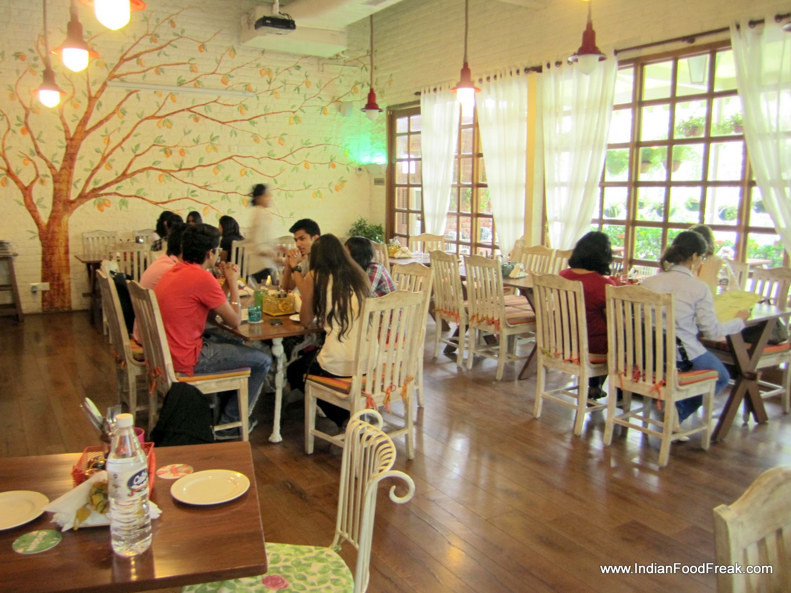 As I reach Diggin café situated opposite Gargi College in the upscale locality of Anand Lok in south Delhi, the sky is overcast and threatening to rain. The café’s open-air section with benches and tables and a bounty of flora and fauna provide the perfect seating for its indoor seating which is comfortably air-conditioned and has oodles of natural light seeping in. This looks like a perfect place for a cozy date. The feel of the café is that of laid back elegance. An overcast sky is an icing on the cake.