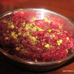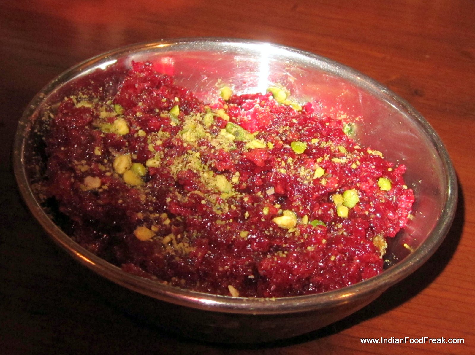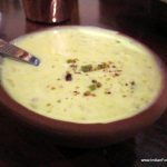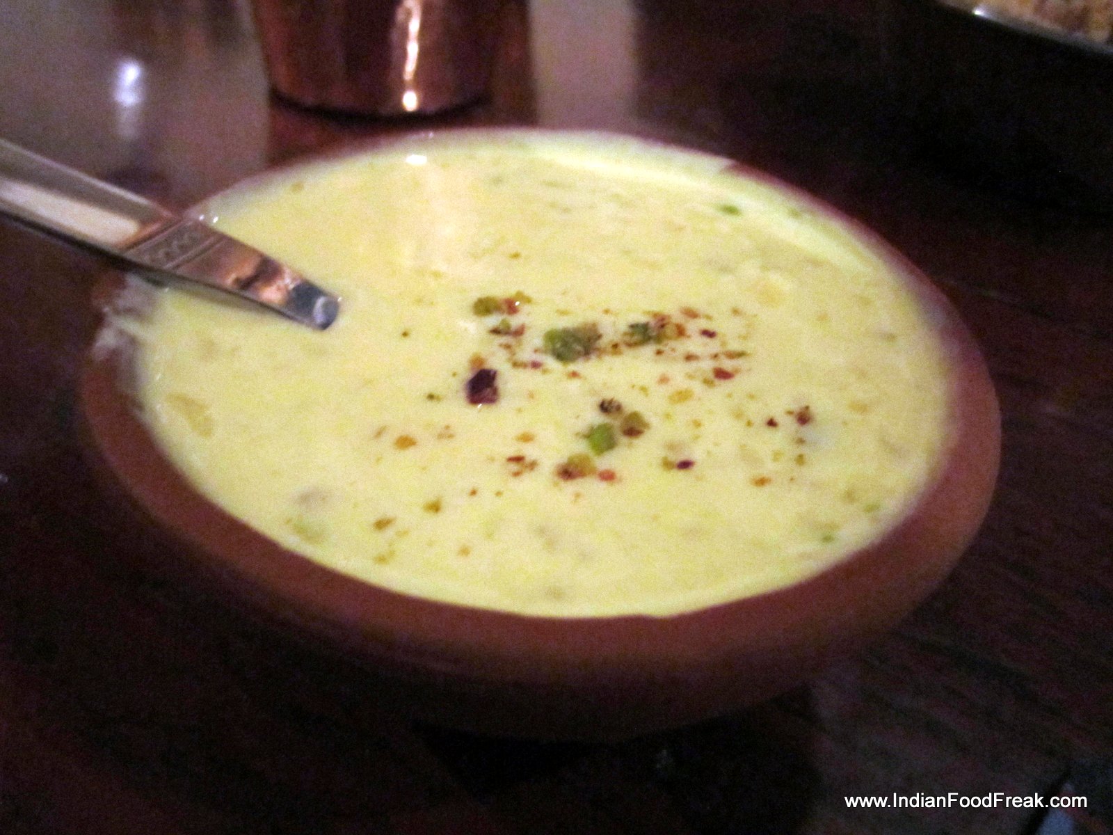 fried in sugar and ghee, heavily laced with dried fruits. It is usually eaten in the winters to ward off cold. Panjiri is normally also given to nursing mothers. This one is as authentic and as delicious as any Grandma can make. Chukandar da halwa (Rs 395) is a wonderfully crafted beetroot halwa sweetened mostly by beetroot’s own sweetness. Kesari Kheer (Rs 395) in comparison is ordinary.