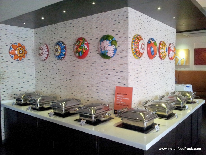 Appam, dosa, podi masala, kerala paratha, payasam and more. When I think of food from the southern states of India, all these come to mind. Southindies had invited us to try out a new concept lunch for their afternoon buffet. As we walked in, the ambiance reminded us of restaurants along major highways serving buffet food. The manager, Mr Yogesh, came over to us to explain how the new concept of their buffet worked. He informed us that they would serve us starters at the table and later we could head to the buffet tables for the salads, mains and desserts.