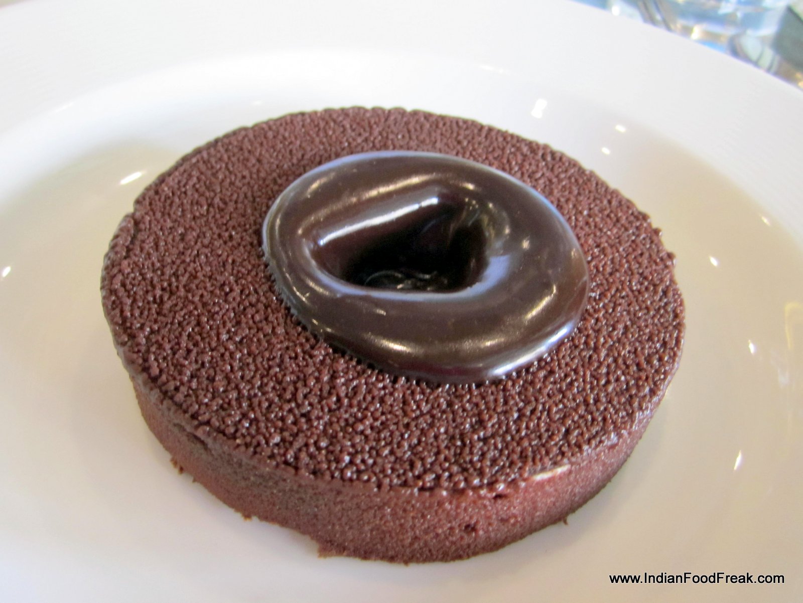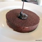 Though I am full the Chef strongly recommends the restaurant’s signature dessert Chocolate Degustation (Rs 395) to end the meal. This is a beautifully constructed dessert. A chocolate disc is presented to me with a creamy chocolate ice cream. Then chocolate sauce is poured over the disc and a hole appears magically in the centre of the disc drinking the sauce in. Now the dessert is ready for demolition. One bite and I discover many layers in the dish. There is dark chocolate, white chocolate, hazelnuts and chocolate sauce making for a perfect bite. It is a wonderful end to a great meal.