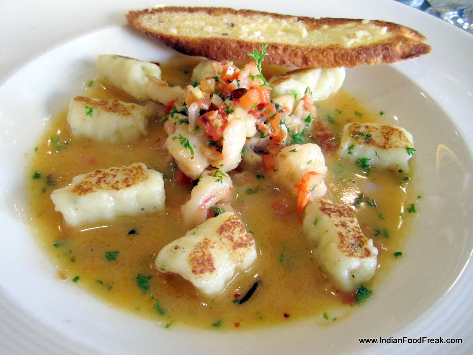 But Charmoula Seabass (Rs 1195) with its North African herb mix and braised fennel, toasted couscous and tomato chutney accompaniments more than makes up. This dish also happens to be Chef Suprabhat’s favourite and is grilled to perfection. Another beautiful dish is the homemade parmesan and potato Gnocchi with shrimp, garlic parsley and white wine (Rs 945) which has the soft pasta being paired well with the crisp shrimps.