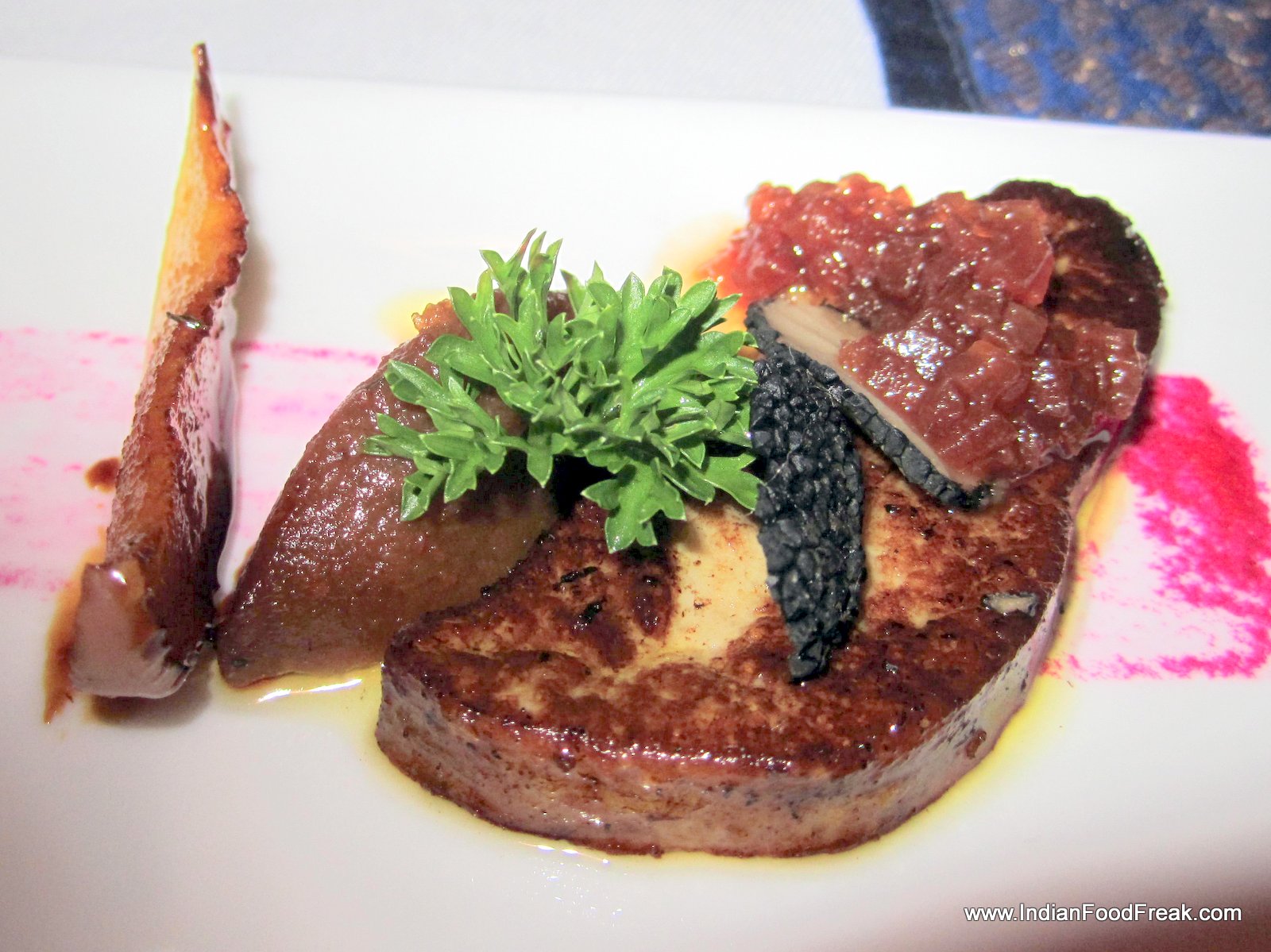 The starters are where the deliciousness quotient goes up significantly and keeps going further up with every dish. Sea Scallops (Rs 1395) on thyme fondant, roasted shallots purée, noilly prat (vermouth) sauce and micro greens are awesome. The Foie Gras (Rs 1495) terrine with fig jam, black truffle, pan seared with roasted plum salsa and red wine gastrique is to die for. My palate sings when I eat it, and I can’t help but sigh with pleasure. Paella Valenciana (Rs 1595) is classic paella from Valencia region consisting of string chorizo, seafood and chicken, and is made proficiently.