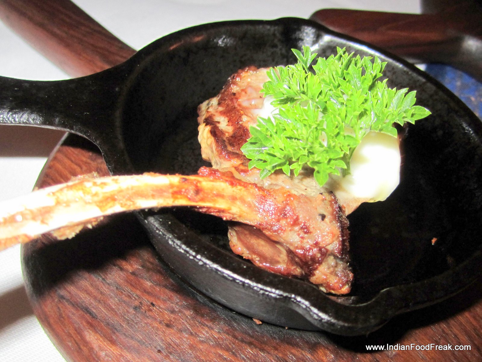 The serving of tapas is designed to encourage conversation because people are not so focused upon eating an entire meal that is set before them. And with small plates periodically appearing on the table and its contents disappearing into our tummies, we are enveloped by a mellow, gracious mood and appreciate life around us. We start with the healthier version of Gambas con Chorizo (Rs 495) or pan roasted prawns and string chorizo with garlic, chili and fresh thyme. Unlike what I have seen in the bars at Europe, the prawns and chorizo are not immersed in olive oil. The Spanish Josper oven is a recent acquisition by the restaurant, and you can think of it as a horizontal tandoor where one can regulate the temperature. Cordero (Rs 595) is Josper oven grilled New Zealand lamb chops served with honey aioli. The oven helps the chops capture a great smoky taste.
