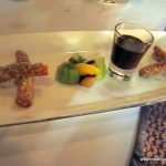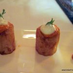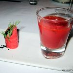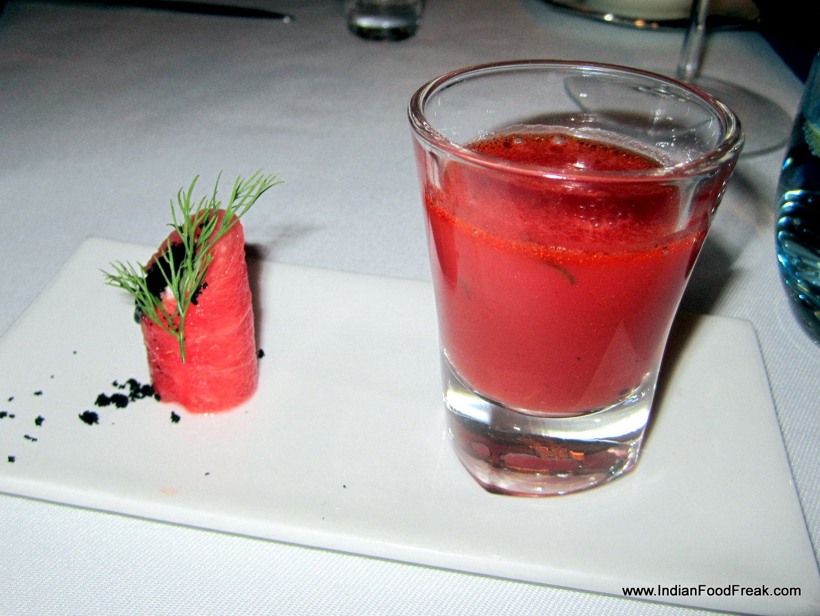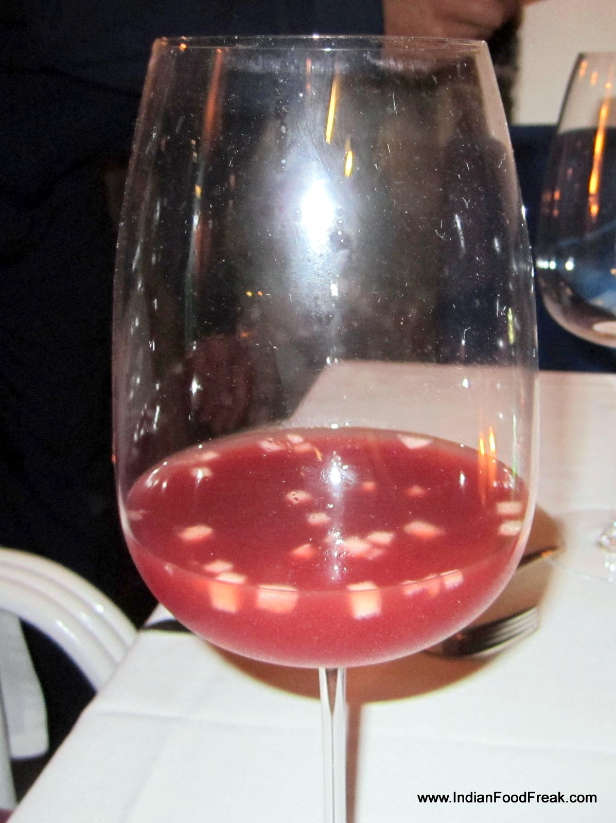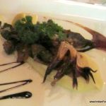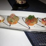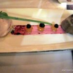 Soon after we are seated, we are served some of the restaurant’s classic Sangria, which is beautifully made, getting us excited about the food to follow. We are also served an amuse bouche of goat cheese rolled inside watermelon along with watermelon juice. The stage is now set for the tapas courses. Ashwani has decided to serve a vast array of delicious appetizers in small plates. He also recommends a Spanish Chardonnay (2010) to go with it, and it truly is an excellent wine.