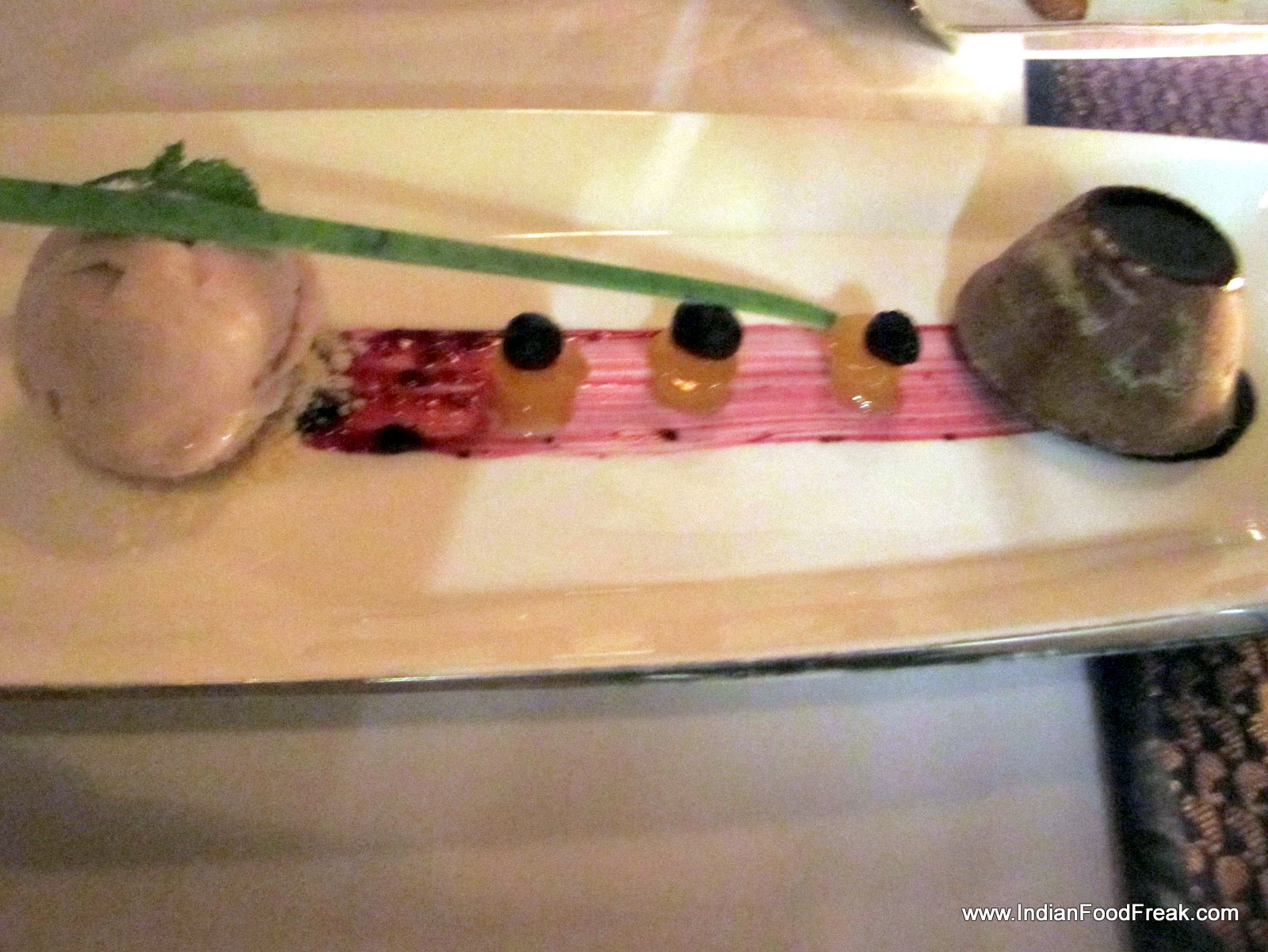 With very little space left for dessert one is contemplating skipping the dessert course, but Ashwani recommends we do try a couple of them . Dark chocolate fondant (Rs 795) is an indulgent soft centered dark chocolate fondant served with banana jelly, chocolate soil, raspberry reduction, banana gelato. And how can one leave a Spanish restaurant without having their Classic Spanish Churros (Rs 795)? How can one go wrong with a churro flavoured with cinnamon powder and dusted with Iranian pistachios served with warm chocolate sauce? It is a perfect end to a most memorable meal.