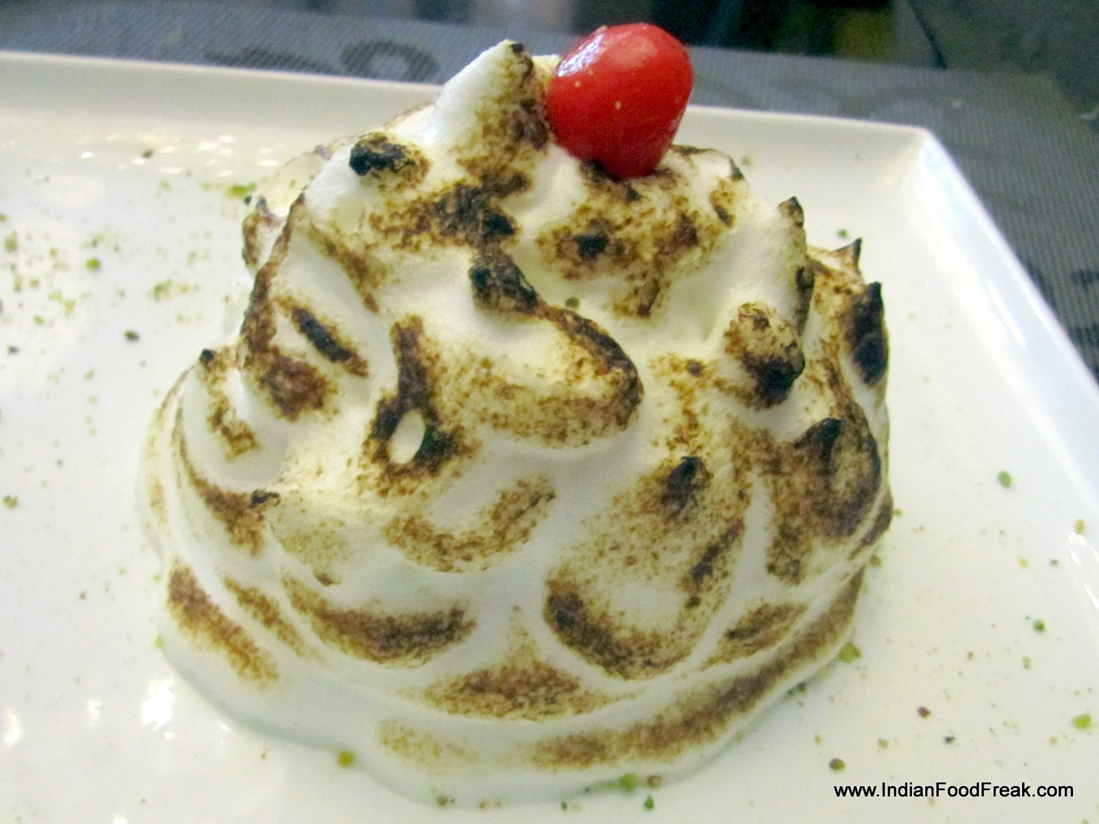 I end the meal with another signature dish – Baked Alaska (Rs 295) which has a chilled tutti frutti sponge cake inside, covered with cream foam that has been baked. The dish looks pretty and is addictively good.