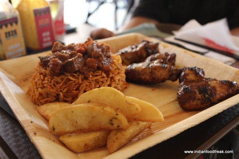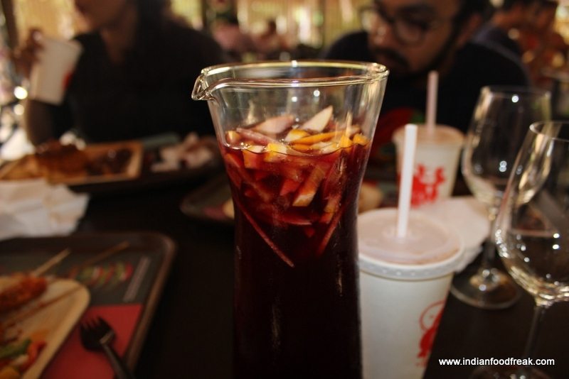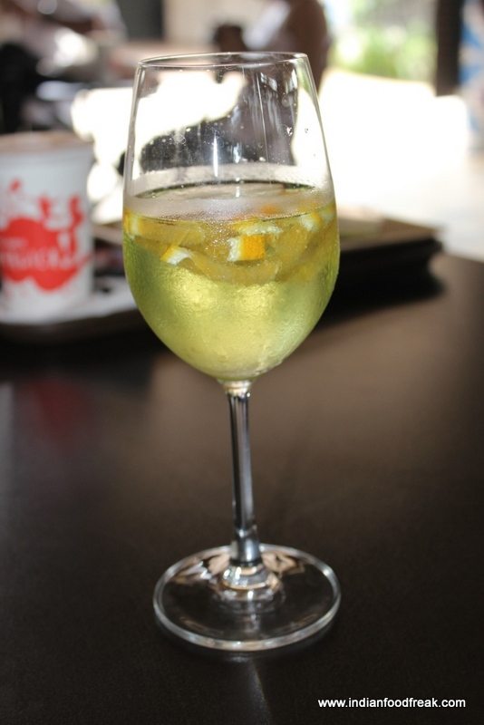 Our lunch was scheduled in the African themed Ze Ze Bar and grill. The place is done to resemble an African village and serves Indian and African grilled dishes. The grill uses lava stones as their heating element instead of traditional sources. The dishes we ordered included a Chicken hot and spicy wrap, a African chicken sosatie, Peri peri grilled chicken, zulu chicken and Tandoori chicken. All these dishes came with a side of rice with some gravy and rosemary flavoured potato wedges. The chicken in both the peri peri version and the tandoori version was flavoursome and despite its size, cooked perfectly to the bone. The rice and the curry was a complete waste, but the potato wedges were amazing, crisp, soft and airy with a slight rosemary flavor. The Chicken Sosatie was an African take on satay which was grilled pieces with peanut coating, very crunchy and interesting. The lunch in short was filling and largely appetizing. The lunch was paired with red and white wine sangrias which were quite average.