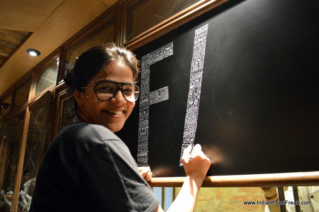 The place has lot of handmade twist, be it be the logo, menu or the way Aditi, their professional calligrapher is completing the wall art when I visited. Undoubtedly lot of thoughts have gone behind in creating the high energy, aptly lit atmosphere at this café that can even put detailing of some of the fine dine outlets at shame.