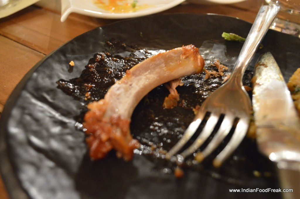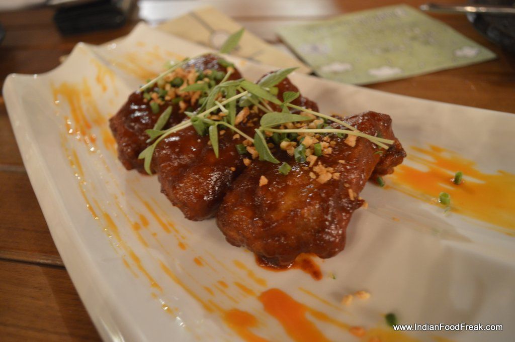 The spare ribs are cooked to perfection for over three-hours on pre cook mode to deliver a falling off the bone meat rubbed with bhoot jalokia (one of the fieriest chilly in the world), however the heat in it has been kept low to appeal to the messes. If it is bhoot jalokia then I want to get the sweat. The feedback is well taken. So when the menu is launched the name will change from ‘Hottest Spare Ribs in bhoot jalokia’ to ‘Chilli Pork Ribs’ (Rs 395), and at this price it is a steal.