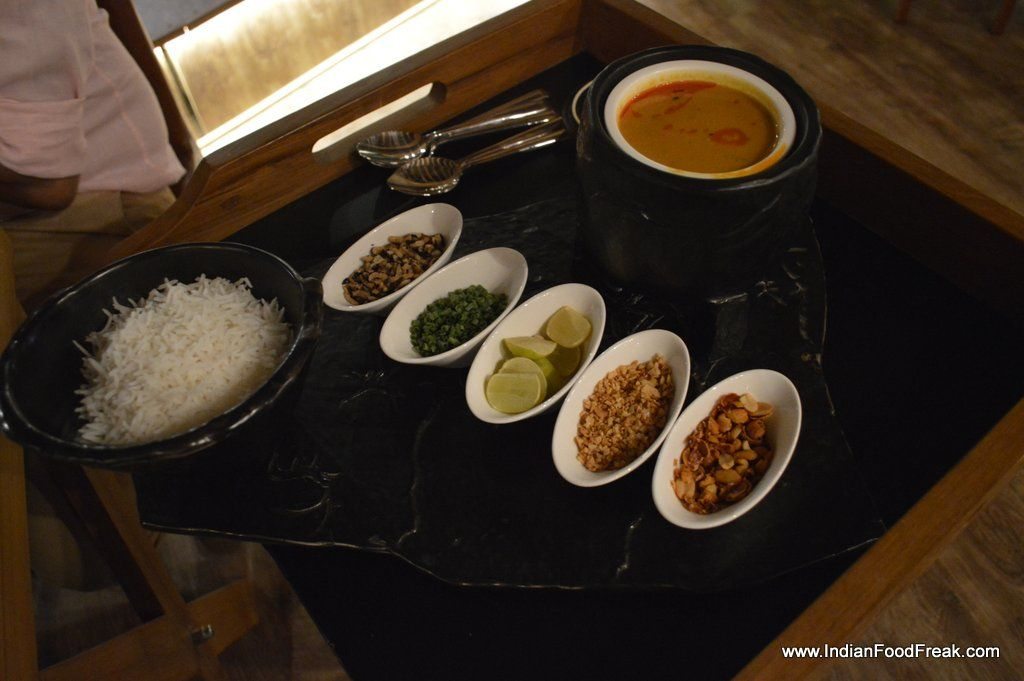 And those who think nothing innovative cannot be done to our daily dose to Dal-chawal, they should try the dal chawal arancini (Rs 225) that has been coated with panko-papad mix before frying.