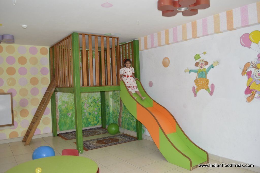 The drive is comfortable except the stretch of around 800 mtrs where the road is under construction. We are booked in the resort wing of the Treehouse Club that has another adjoining ‘business’ wing with a more “hotel” type look and less of open greenery. Our wing is spread over 5 acres with 101 rooms (in both wings) and for vacationers, resort wing is ideal. The huge courtyard in between, manicured gardens, large swimming pool, a spa, a kids room along with indoor badminton room and many other amenities, we are already spoiled for choice.