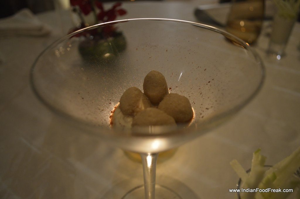 Adding an Indian touché to the crème brule is the garam masala. Baileys flavored chhena payesh is sure to appeal to the coffee lovers while cinnamon shrikhand goes so well with green apple that inspite of going slow on desserts, I take a few more bites.