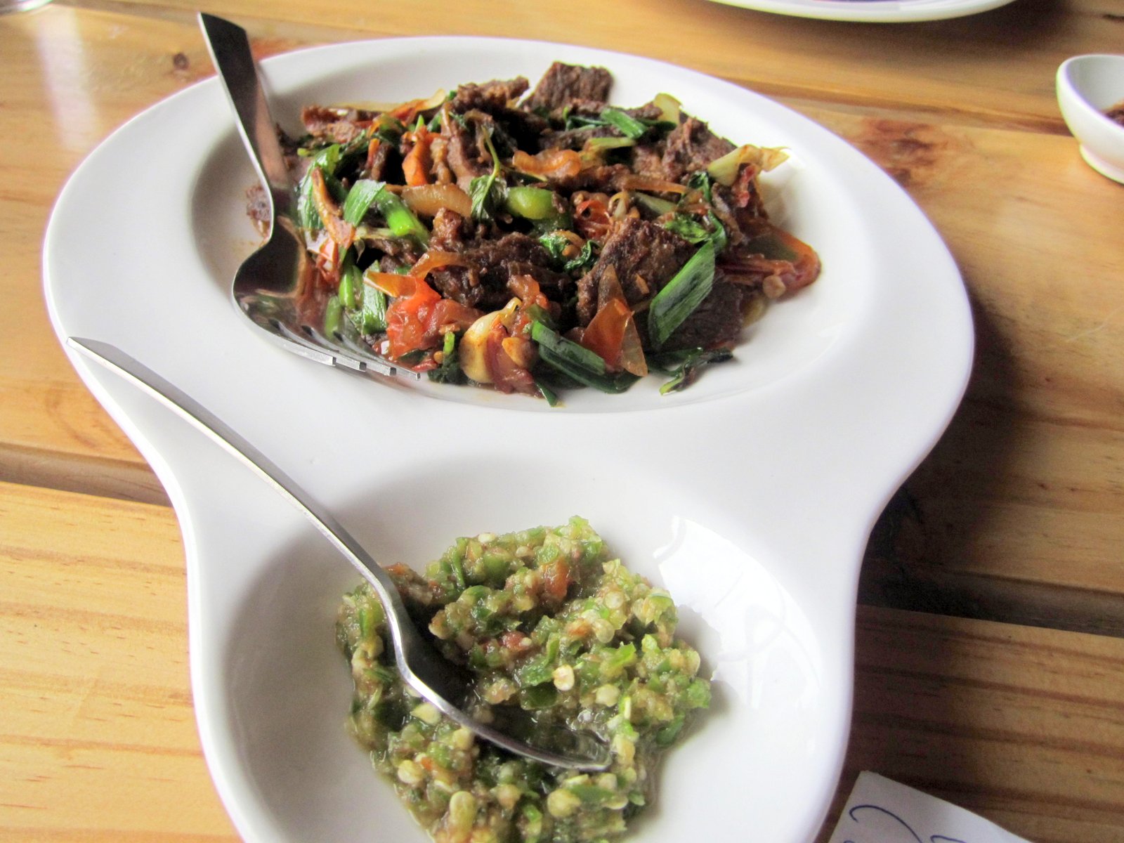Karen Yepthomi is the charming and energetic owner of the restaurant belongs to the Sema Tribe from Nagaland. But she calls herself a pakkia Delhi Naga, having done her education here. She has invited me to taste her vast spread of all things porcine and wonderful, with some vegetarian dishes and fish also thrown in.