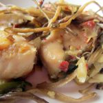 Main courses began with Pork Anishi (Rs 319), or Pork cooked with fermented yam leaves. The umami taste of this dish takes my breath away, especially when eaten with the Naga red rice. I can easily have this combo for every meal. Pork Axhone (Rs 319) is equally delicious, with the distinct taste of fermented soya. Fish with dry bambooshoot and yam stems (Rs 259) is a semi-dry preparation with light and delicate rohu fish. Though the fish is good, I go back to my favourite Pork Anishi to refresh my taste buds. The Alo Etsuen Gravy (Rs 149) is a good potato based stew, which complements the meal well, as do the simply steamed vegetables.