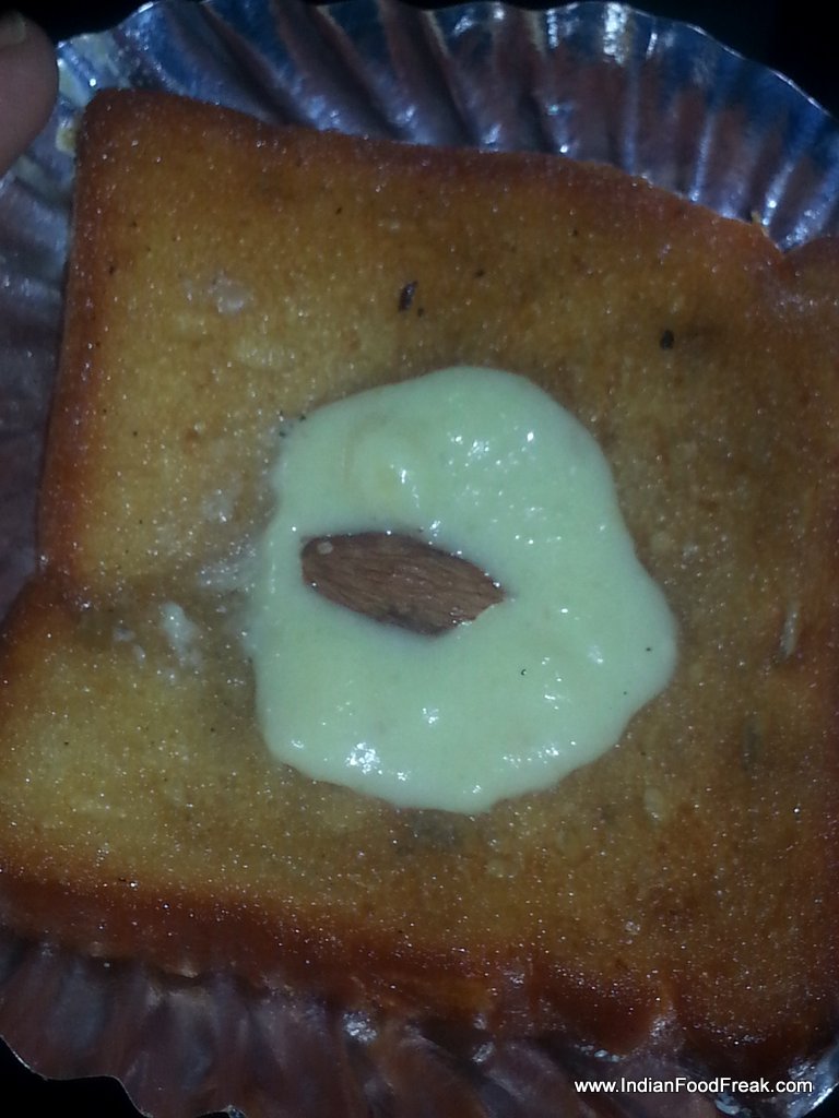 Discarding the chop in heap of used paper plates without letting it further spoil my palate and mood, I moved on and decided to check what other food items were on offer. There was a huge variety and I decided to first check out the haleem. The mutton haleem was phenomenal. Thereafter I went for patthar gosht. This beef preparation was cooked over a thick hot stone that is warmed by charcoal. I wondered on how would have someone got the idea of cooking meat over a hot stone rather than a wok or better direct over the fire. However, it turned out to be the best dish of evening. The gosht just melted in mouth. The succulence could have easily given Haleem a ride. After having wrapped up two portions of patthar gosht, I was too full to be trying out anything else. But leaving the place without trying any sweet dish would have been a sin. The kiosks were serving over 100 varieties of sweets and after much deliberation I settled for shahi tukra which again was excellent.