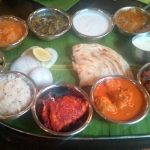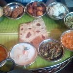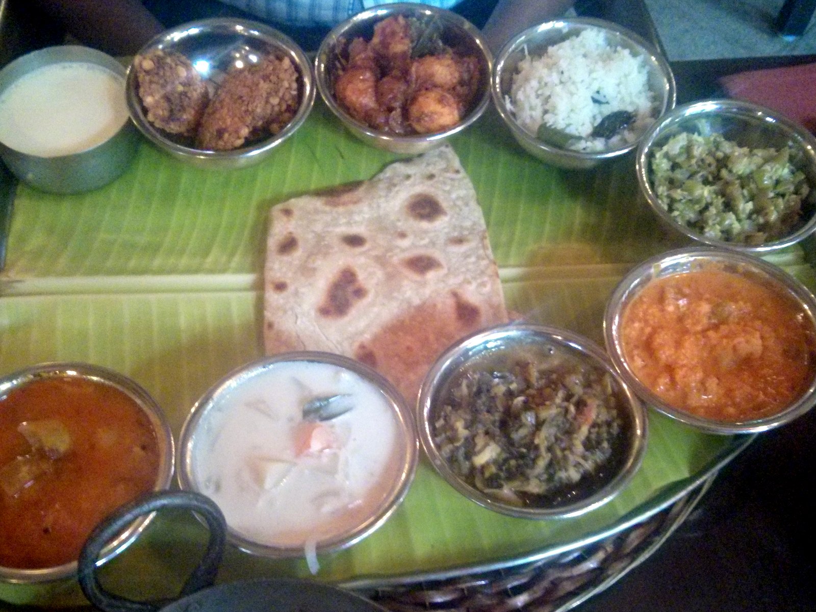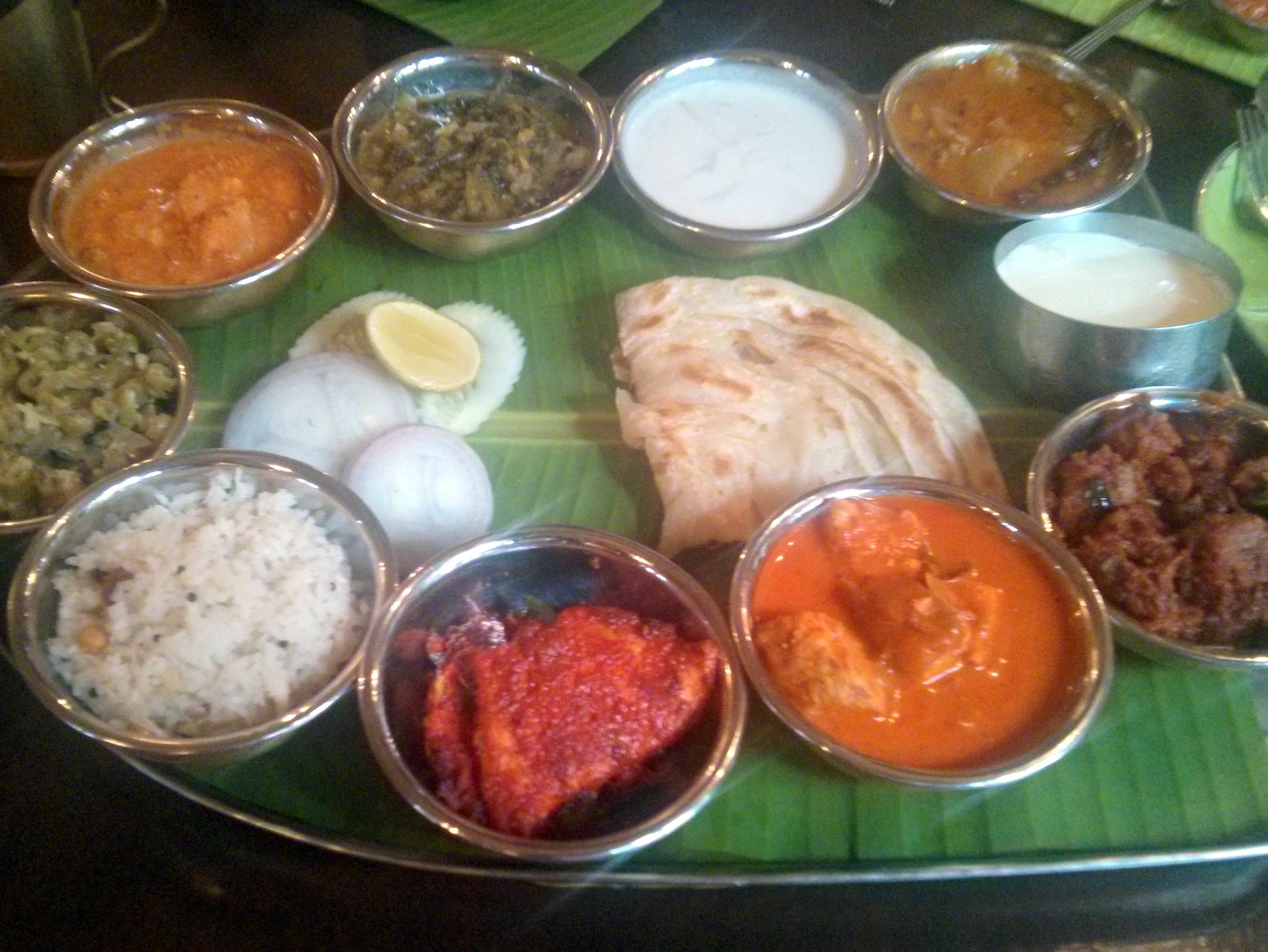 I choose to go with their non-vegetarian thali meal. Within minutes of seating the popadams and chutneys arrive, along with the banana leaf that would be the base for serving the many dishes that will be served. A polite request to the Charming Chef Vasantha Gopal, and he agrees to substitute chicken with mutton in the thali.