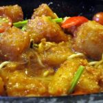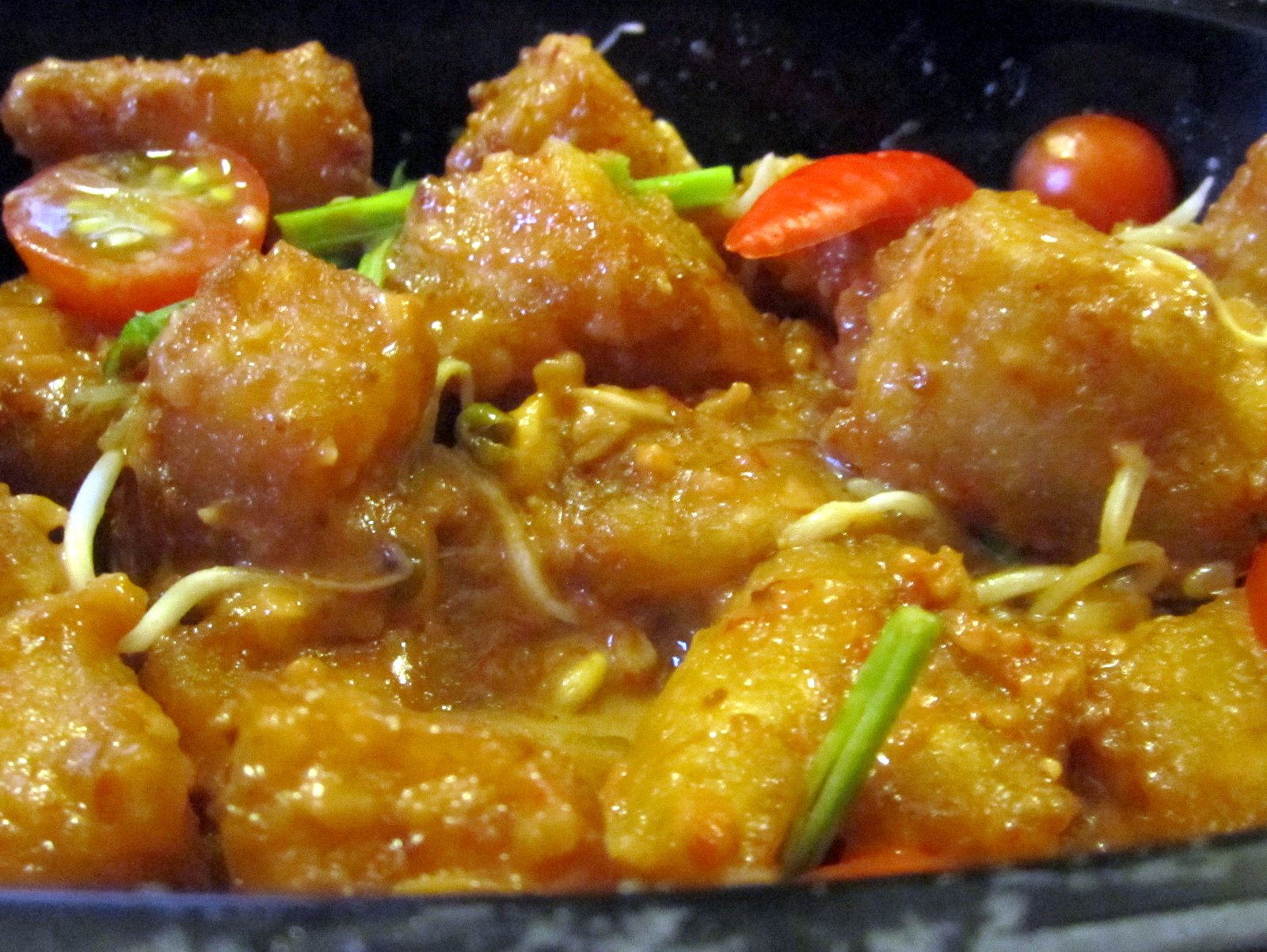 Now to the average ones. Otak otak (Rs 295) is an Asian snack with fish marinated with spices and kaffir lime leaves, moulded into cakes wrapped in banana leaves and steamed. It is a light snack though some may find the texture a bit pasty. Pan fried noodles (Rs 345) again comes in two boxes, soft and crispy yellow noodles & saucy mixed vegetables and is pleasant without being exceptional. Chicken in black bean sauce (Rs 375) again is a competent dish but not remarkable.