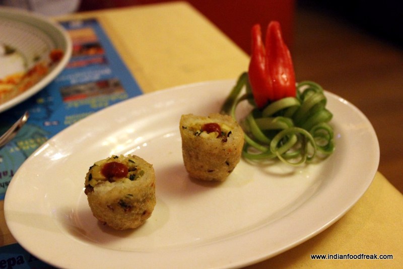 The Dahi ke kebab was a disappointing lump of yoghurt wrapped in thick bread and deep fried. Needless to say, it was oily and lacked seasoning, same was the case with the Beetroot and Green Peas Kachori which was also a bread and vegetable filled offering. The best starters of the lot were the Tender Coconut and Sago baskets which were not only visually appealing but also tasted high on flavour with crunchy sweet corn. Even the Shengada Moong and Cashew Kachori was much better, served like a chat with dahi and chutneys. Finally, the typical Maharashtrian Thalipeeth was exactly how one would expect it to be. Simple clean flavours of the four grain thalipeeth with accompanying sweet chutneys, is a must have in any Maharashtrian household.
