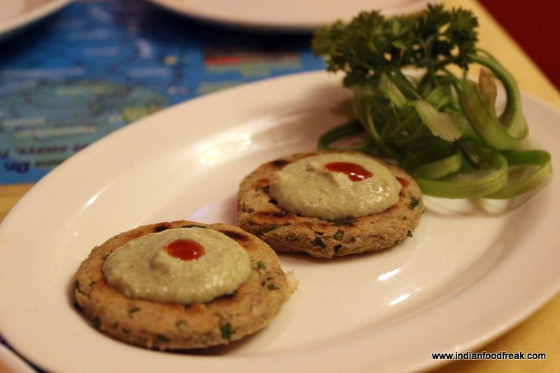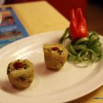 After a round of a very sweet and refreshing tender coconut welcome drink we were served the giant platter with several items covering a whole gamut of savouries and sweets were served on the plate. Starting off, the Sabudana vada was a bit sticky and goeey and I kept of thinking of the better ones that I have tasted on the roadsides. The Mix Veg kebab on the other hand was very flavourful, full of beans and vegetables pairing extremely well with the thecha dry sauce served on the table.